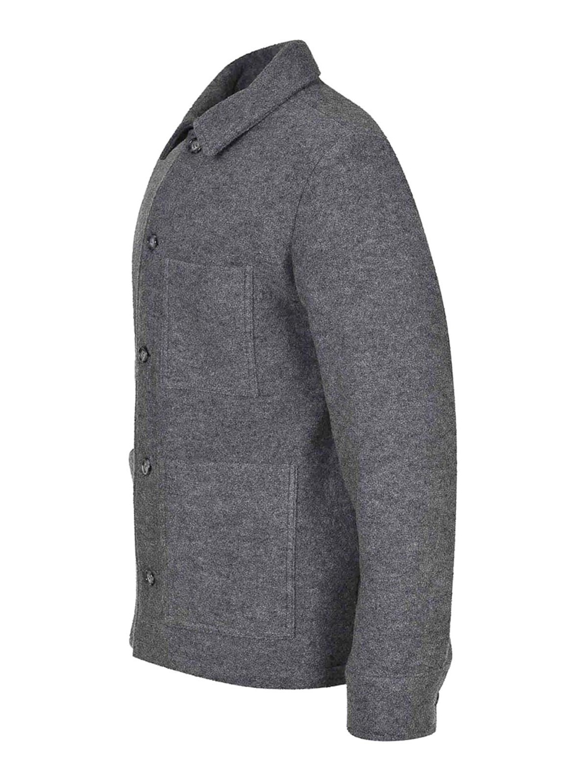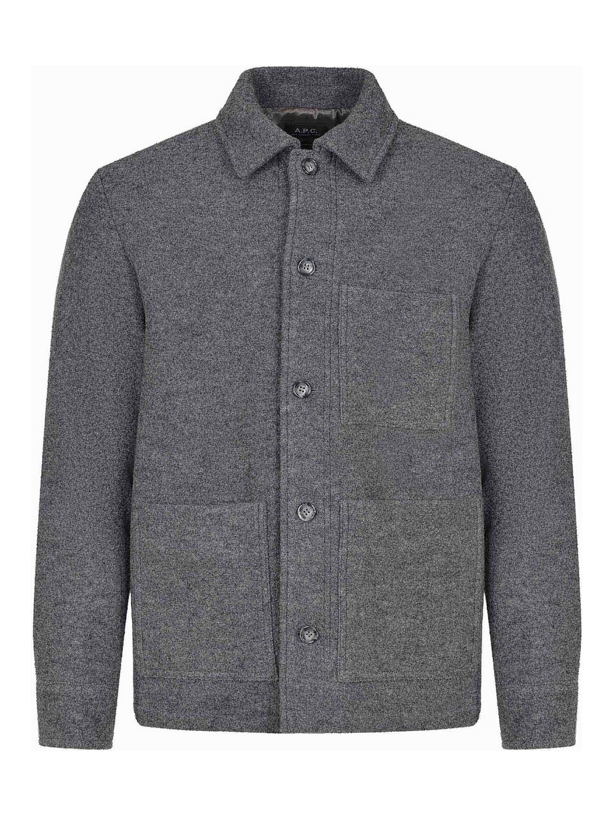 Camisa A.p.C. confeccionada en lana gris. cuello clásico. cierre con botones en la frontal. mangas largas. puños abotonados. Bolsillo en el pecho. bolsillos laterales. 100% lana virgen.