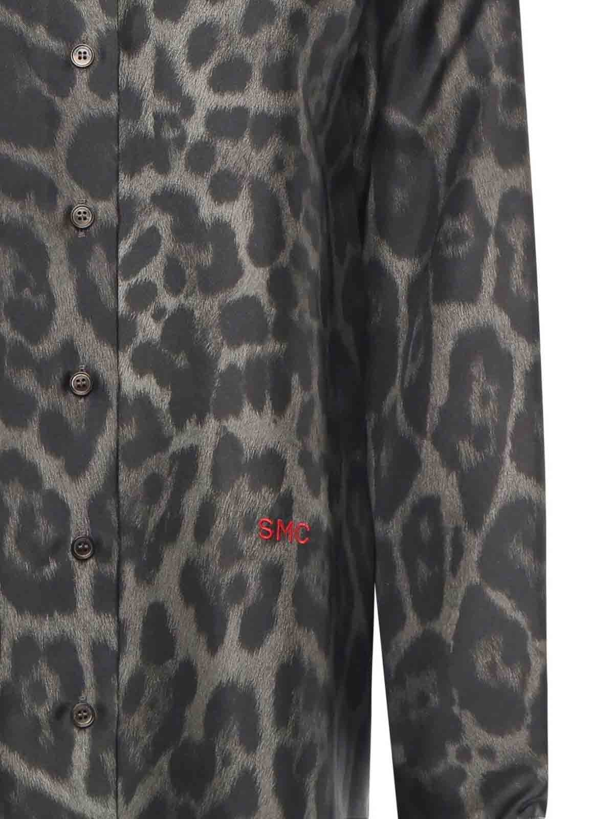 Cuello clásico bordado con estampado de leopardo fresno gris con botones de manga larga
