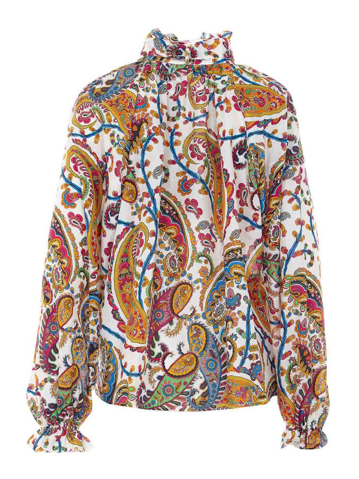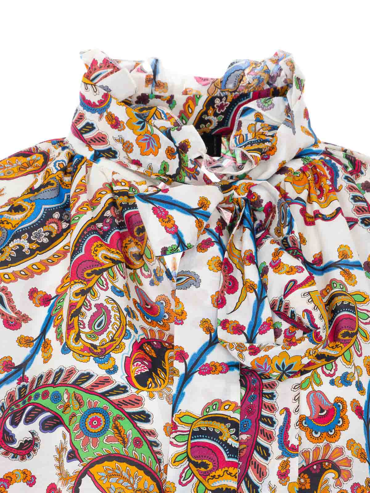 Camisa multicolor Etro, cuello en V, detalle de bufanda en el cuello, estampado de cachemir multicolor