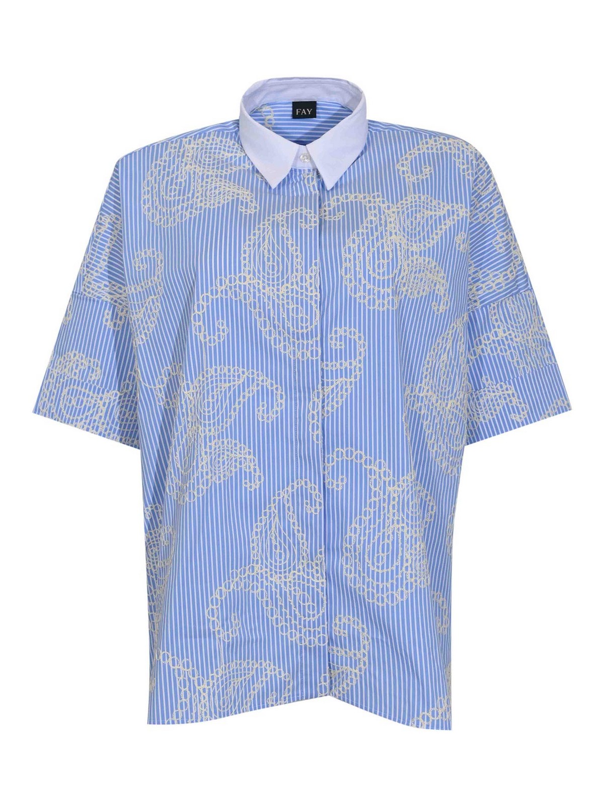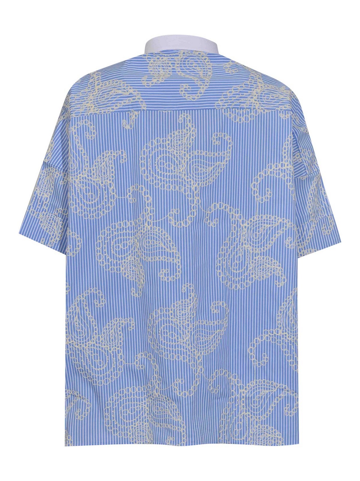Camisa de popelina de algodón para mujer, tela: popelina de algodón, estampado: rayas con bordado de cachemir, cuello: clásico, mangas: cortas, cierre: botones en la parte delantera, detalles: bordado decorativo en toda la prenda, forro: no, ajuste: ajuste cómodo