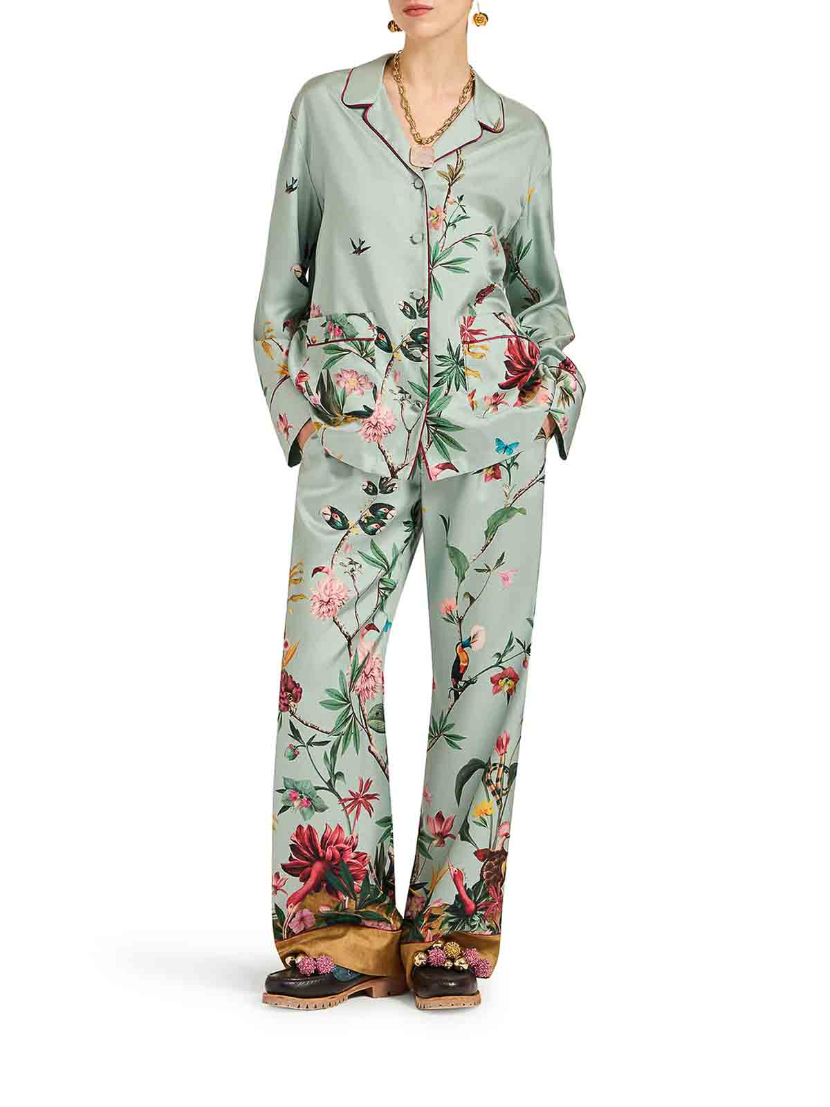 cuello camisero, dos bolsillos delanteros, detalles de ribetes, mangas largas, corte ligeramente sobredimensionado, composición: 100% seda, la modelo mide 176 cm/5`9 y lleva una talla S, color: panel zooflora/multicolor