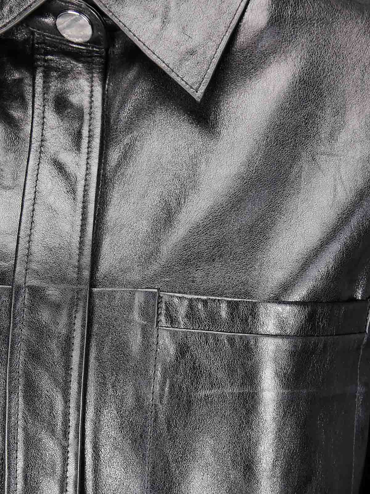 Camisa de piel de cordero con corte tipo camisa, corte holgado y cierre con botones a presión.
