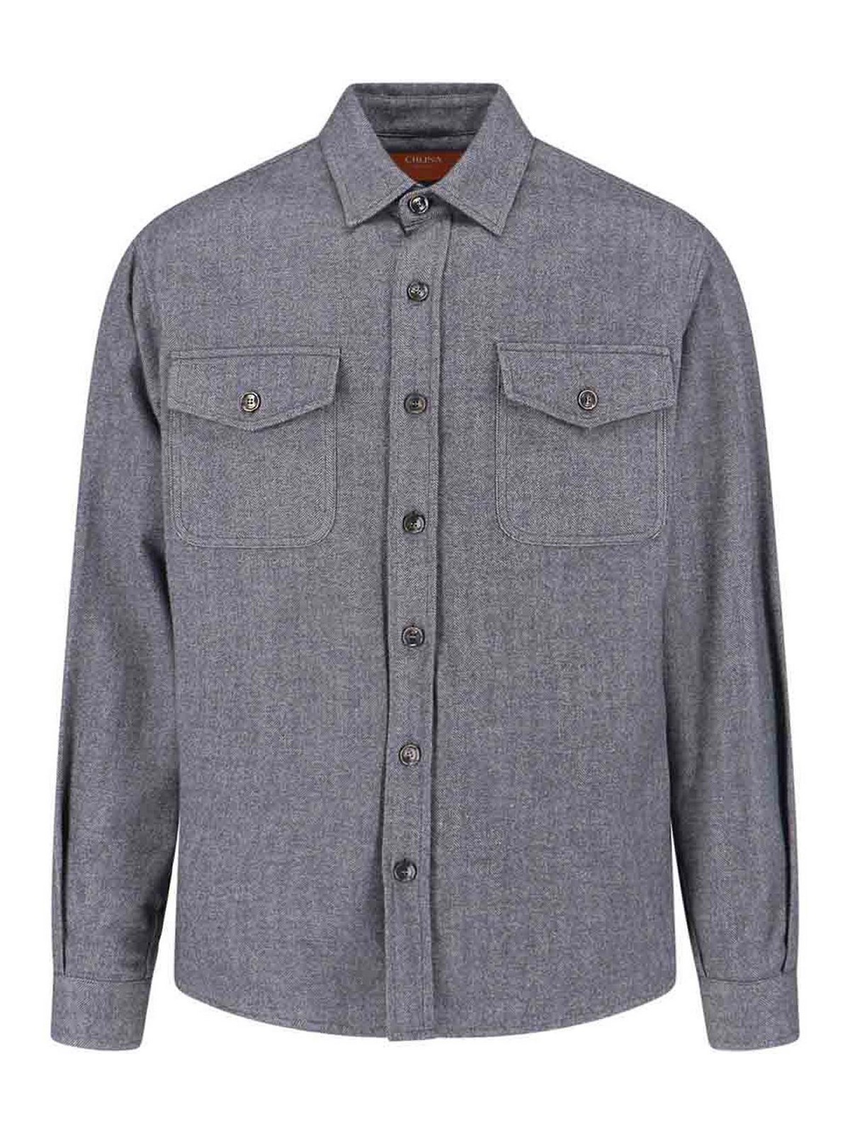 Camisa Cruna osaka, de algodón gris, cuello clásico, cierre con botones, dos bolsillos frontales con botones, dos bolsillos laterales, puños abotonados, dobladillo recto.