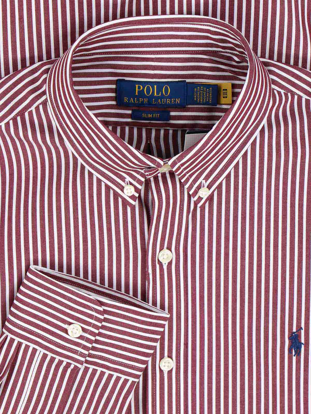 Camisa con el logotipo del tejado Ralph Lauren Red Poor Collet, botones, botones, puños, logotipo en el pecho