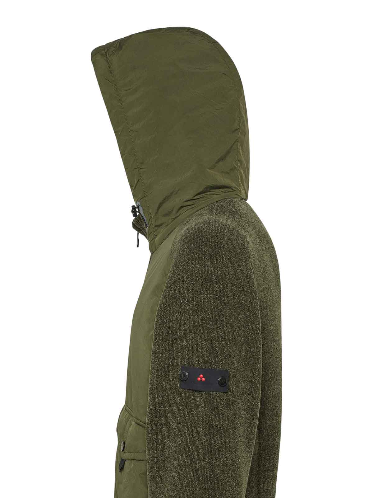 Camisa híbrida Peuterey boleyn bmat con cremallera central, confeccionada en chenilla afeitada y nylon técnico. El contraste del material entre las mangas de chenilla y el cuerpo de nylon crea un efecto babero con un carácter fuerte y urbano. la capucha ajustable con cordón, los grandes bolsillos frontales con solapa y hebilla y la cremallera central de doble cursor completan un diseño dinámico y contemporáneo. El logotipo de la trilogía aplicado en la manga izquierda subraya la identidad del marca. una prenda versátil que combina la estética de las prendas de punto con el espíritu funcional de la técnica ropa de abrigo, ideal para los looks metropolitanos más modernos. Detalles y ajuste Hecho de chenilla afeitada y nailon técnico Capucha ajustable con cordón bolsillos frontales grandes con solapa y hebilla Cierre central con cremallera doble deslizante Logotipo de la trilogía aplicado en la manga izquierda Corte regular Composición del tejido exterior: 94% poliéster, 5% poliamida, 1% fibra elástica Acolchado: 100% poliéster cuidado de la ropa lavar a mano no usar secadora, planchar como máximo 110 °C, no limpiar en seco, secar en posición horizontal a la sombra