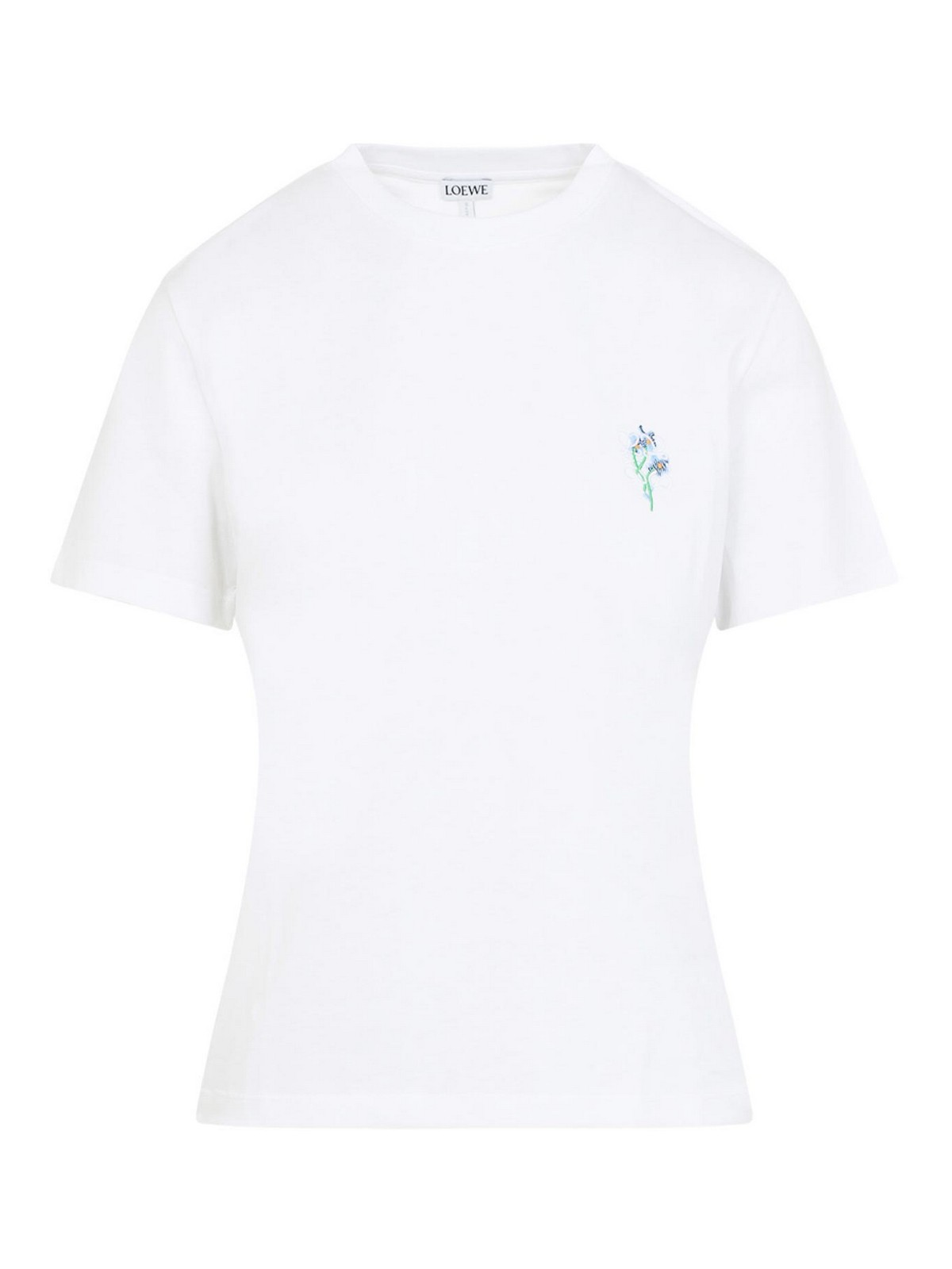Camiseta Loewe de algodón blanco de corte holgado. Confeccionada en algodón, poliéster y elastano. Cuello redondo, logotipo bordado en el pecho, manga corta, dobladillo recto.