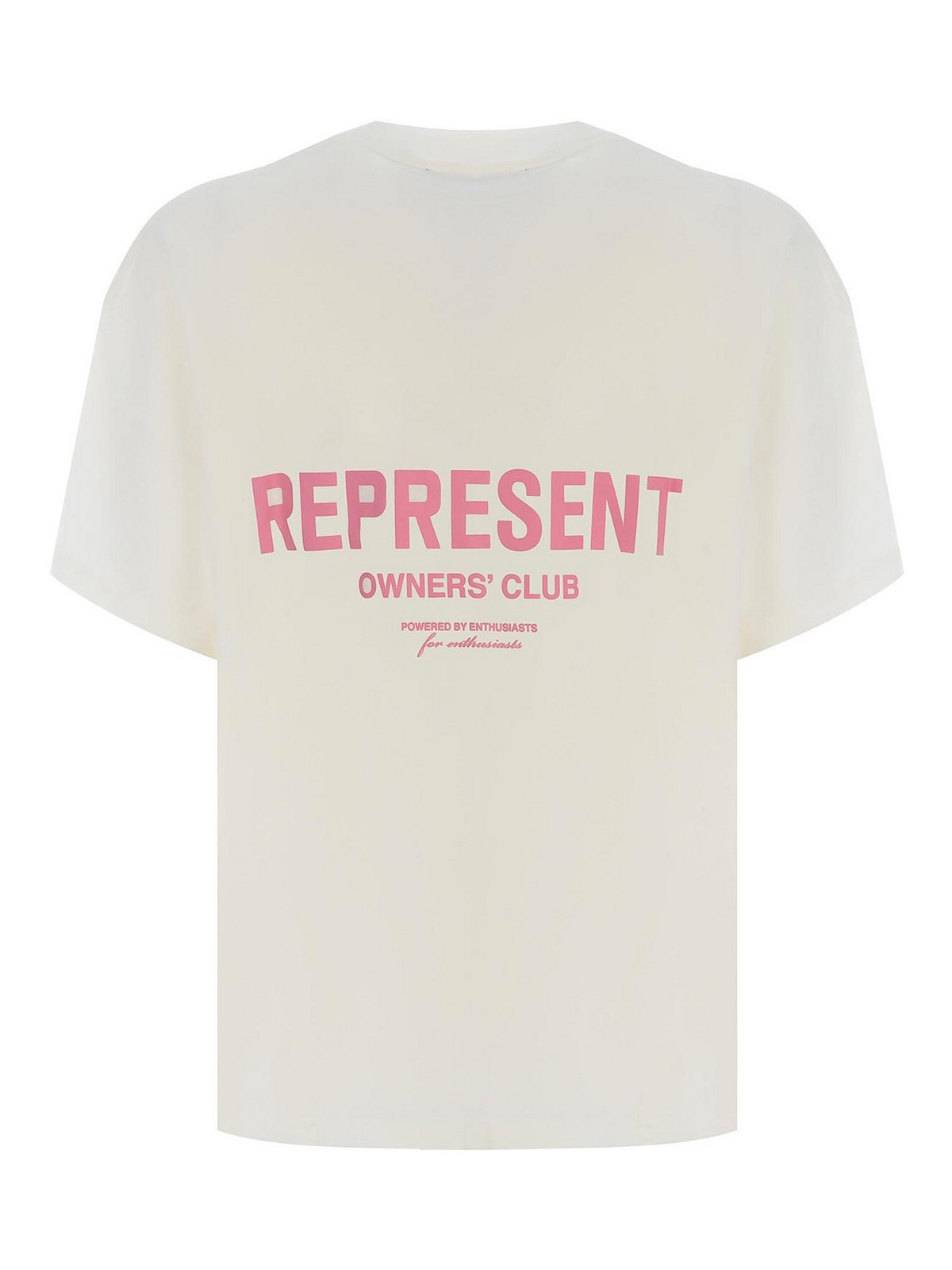 La camiseta representa el cuello redondo acanalado en rosa con el logotipo del club de propietarios en el pecho representa el logotipo aplicado en la parte inferior, logotipo maxi gráfico en la parte posterior