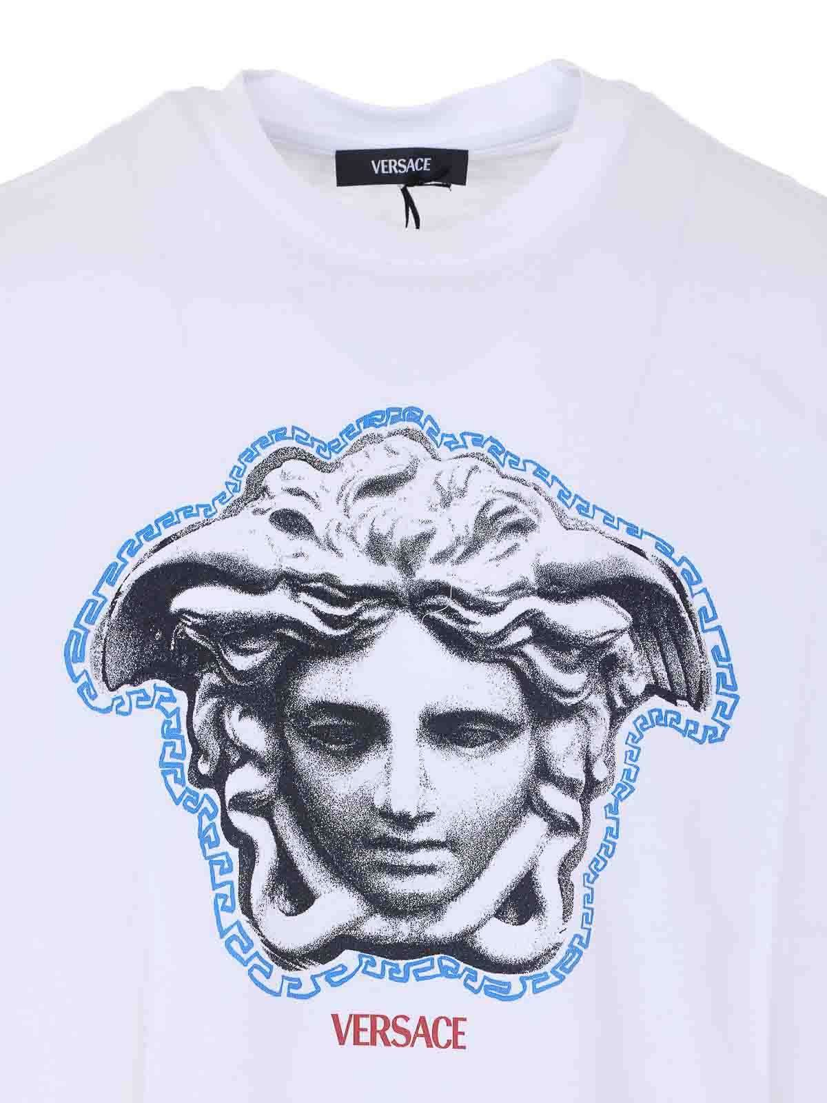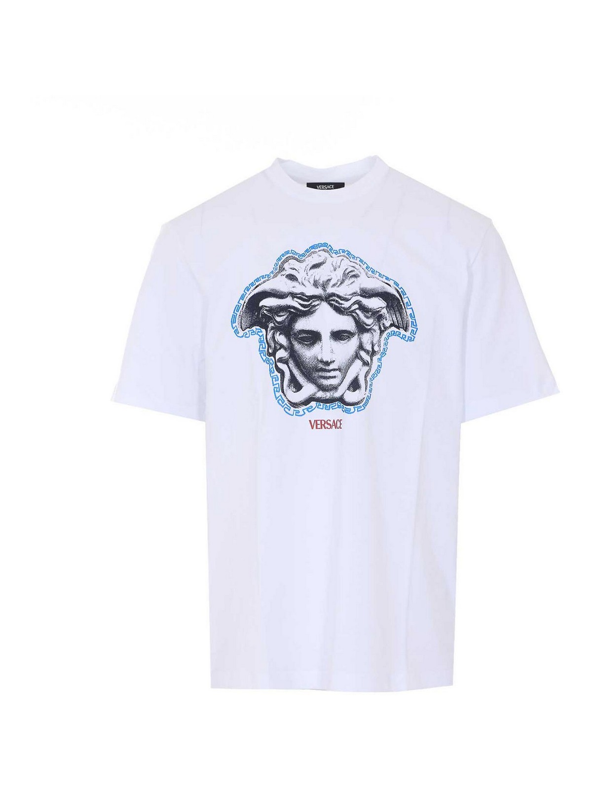 Camiseta blanca Versace, estampado de medusa griega en la parte delantera