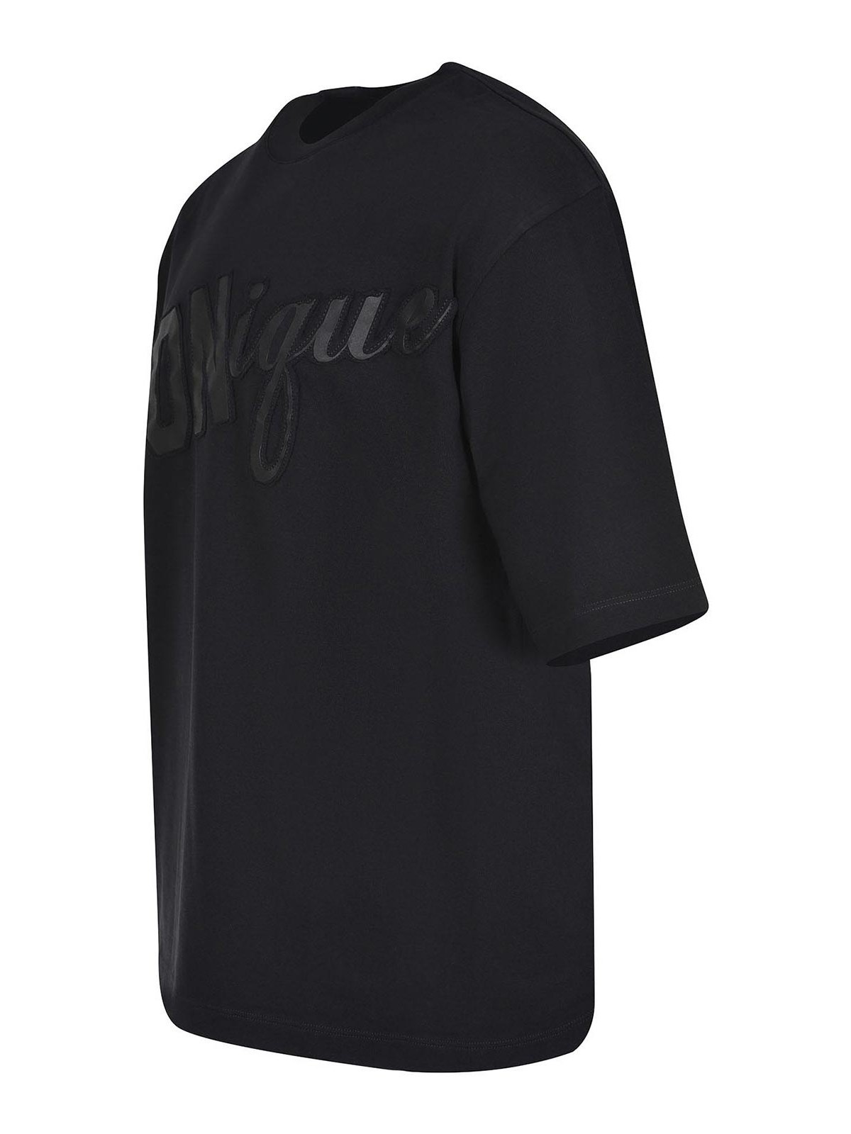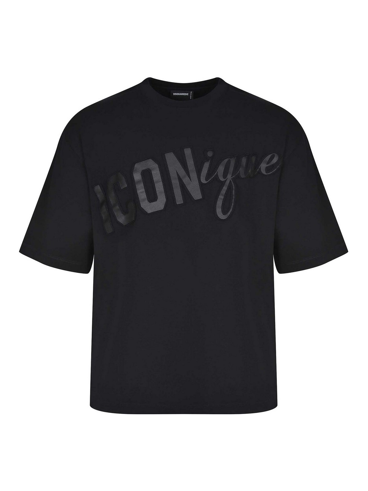 Camiseta Dsquared2 confeccionada en algodón negro, cuello redondo acanalado, manga corta, inscripción «icono» tono sobre tono en la parte delantera, 100% algodón hecha en Italia