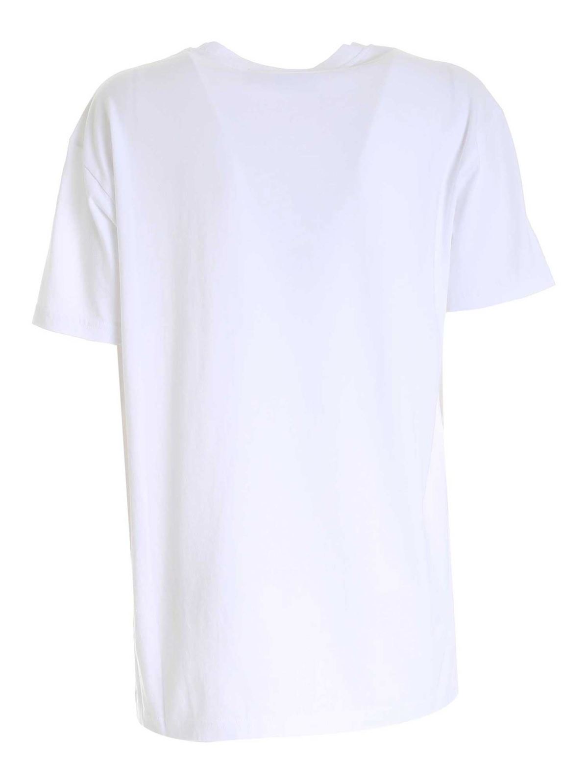 Camiseta oversize de algodón orgánico Color: blanco Logotipo multicolor en la parte delantera Logo bordado multicolor en el dobladillo Escote de canalé