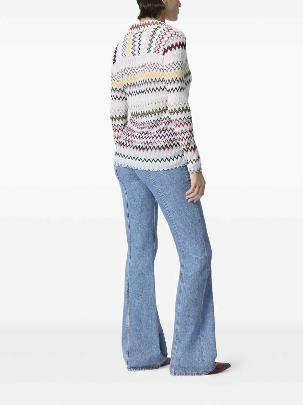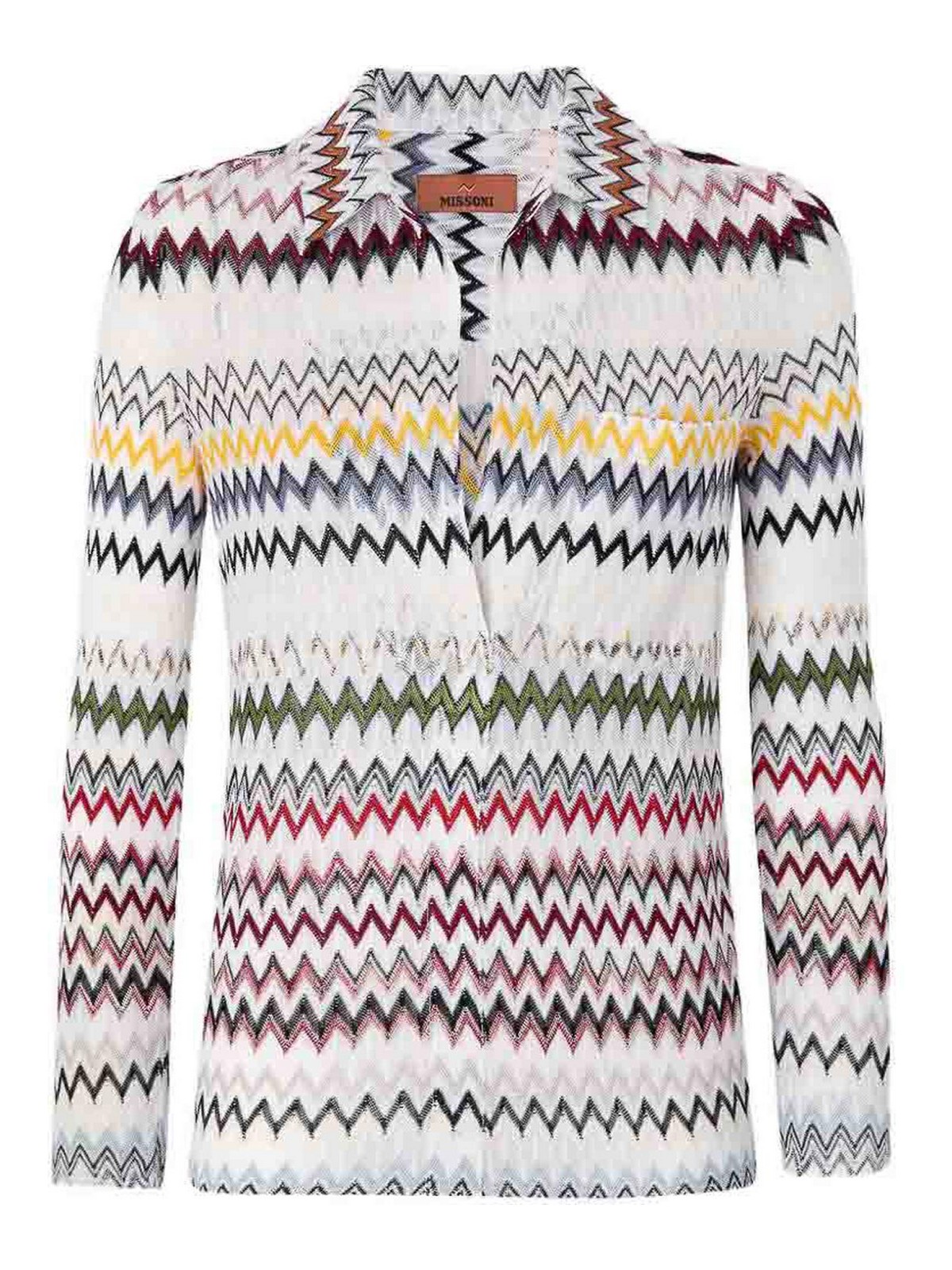Camiseta blanca y multicolor de manga larga de missoni, confeccionada en Italia con una artesanía icónica. Con un estampado en zigzag y mangas largas, cada pieza puede diferir ligeramente de la imagen, destacando el exclusivo proceso artesanal de Missoni. Perfecta para looks elegantes e informales.
