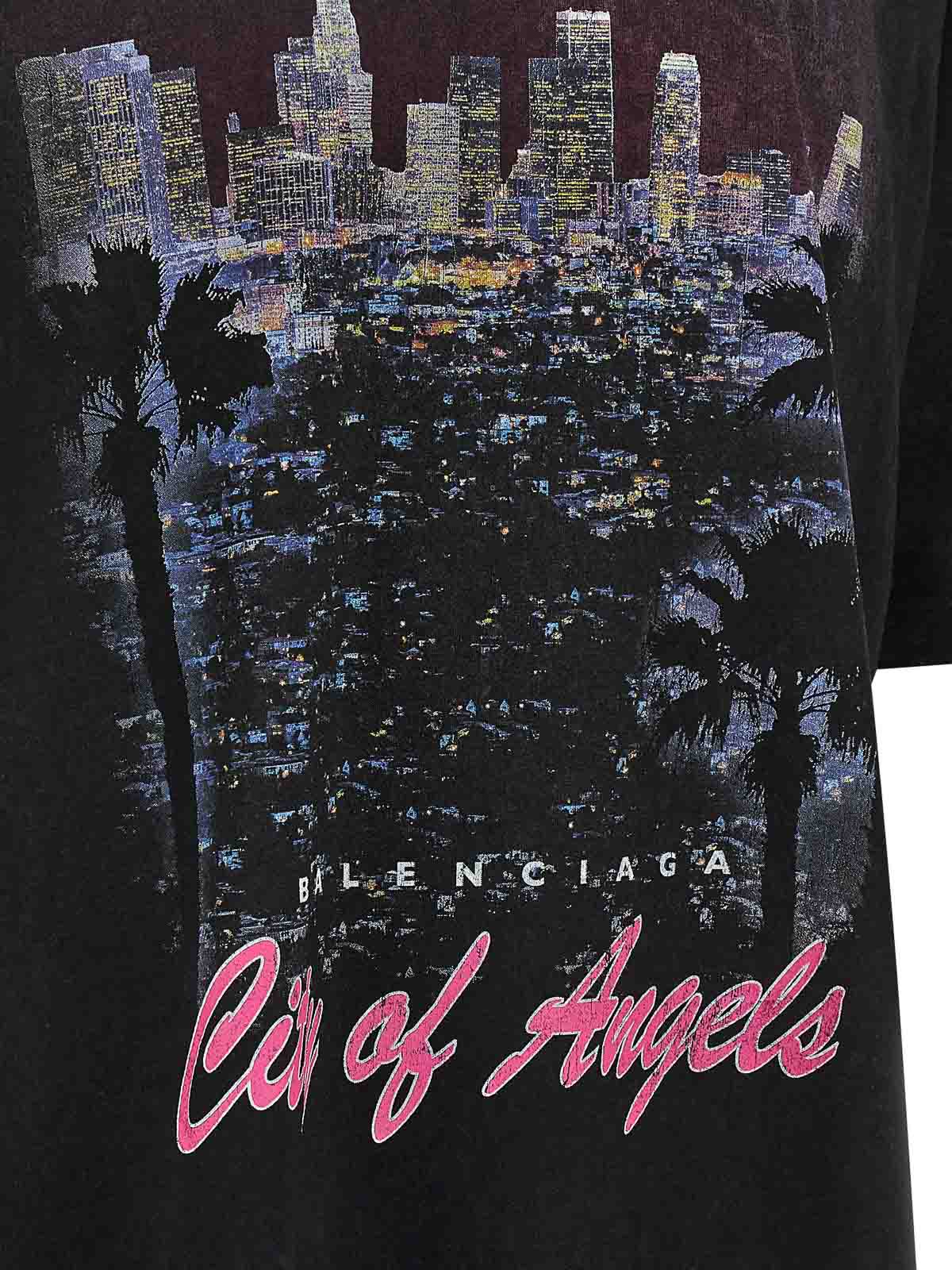 Camiseta de punto seco desteñido, estampado «City of Angels» en la parte delantera, cuello redondo, mangas cortas con hombros caídos.