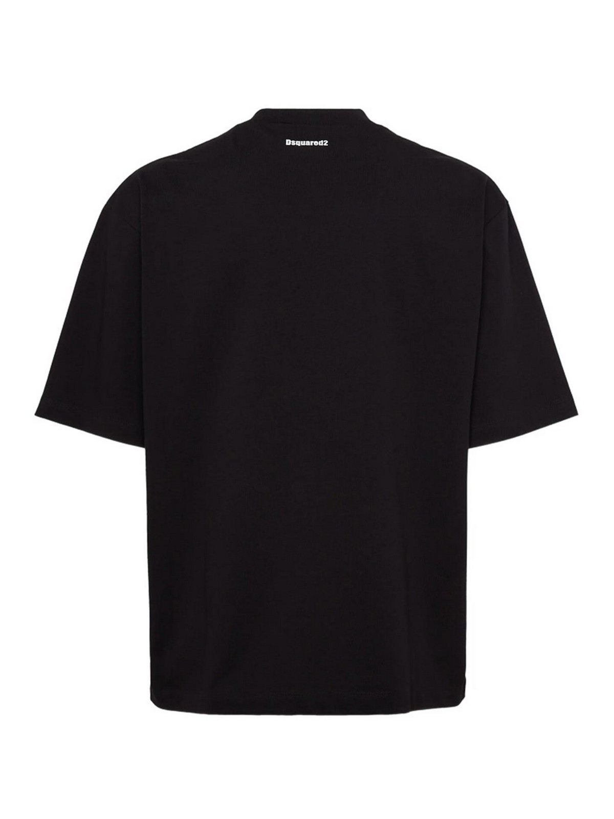 Cuello redondo negro, mangas cortas, dobladillo recto