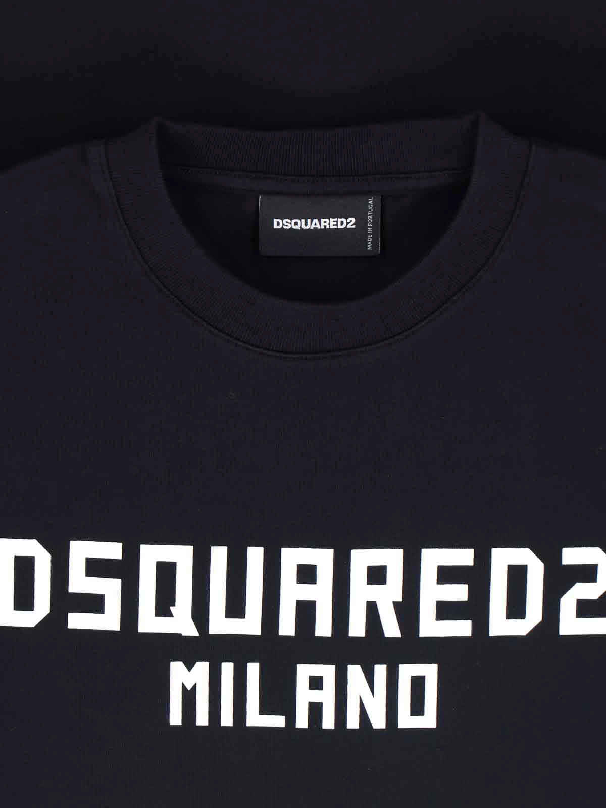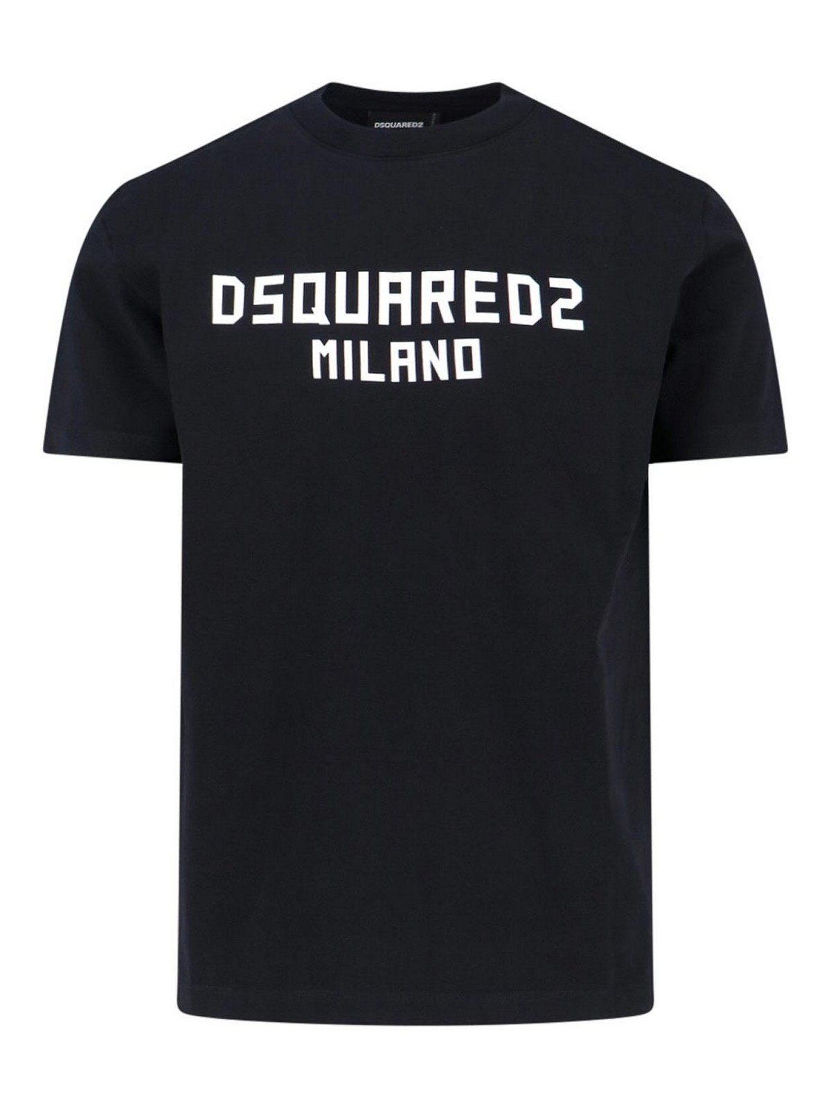 Camiseta con el logotipo de Dsquared2 en algodón negro, cuello redondo, manga corta, logotipo estampado en contraste en la parte delantera, dobladillo recto.