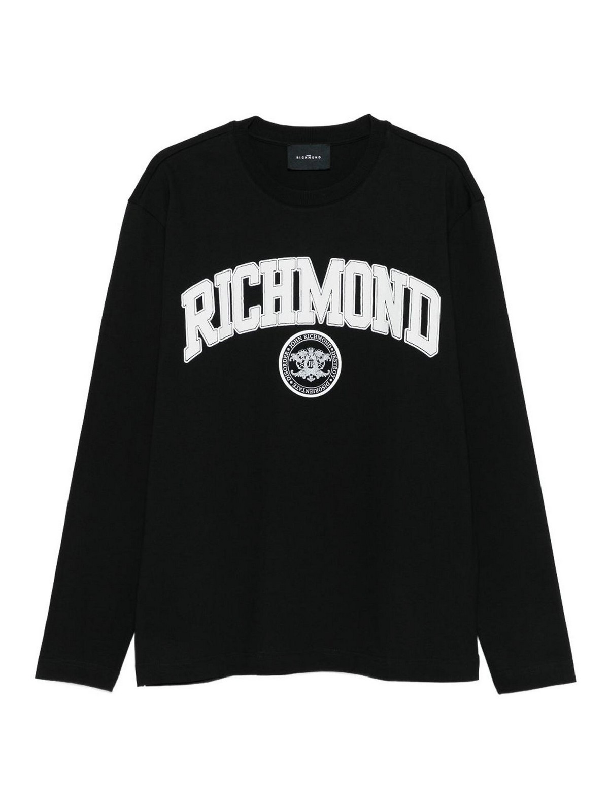 Camiseta negra de manga larga con logo de John richmond