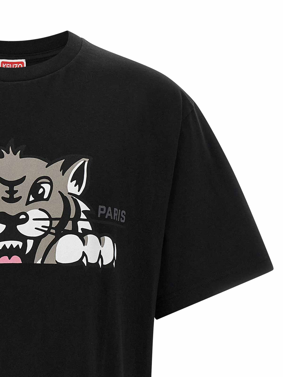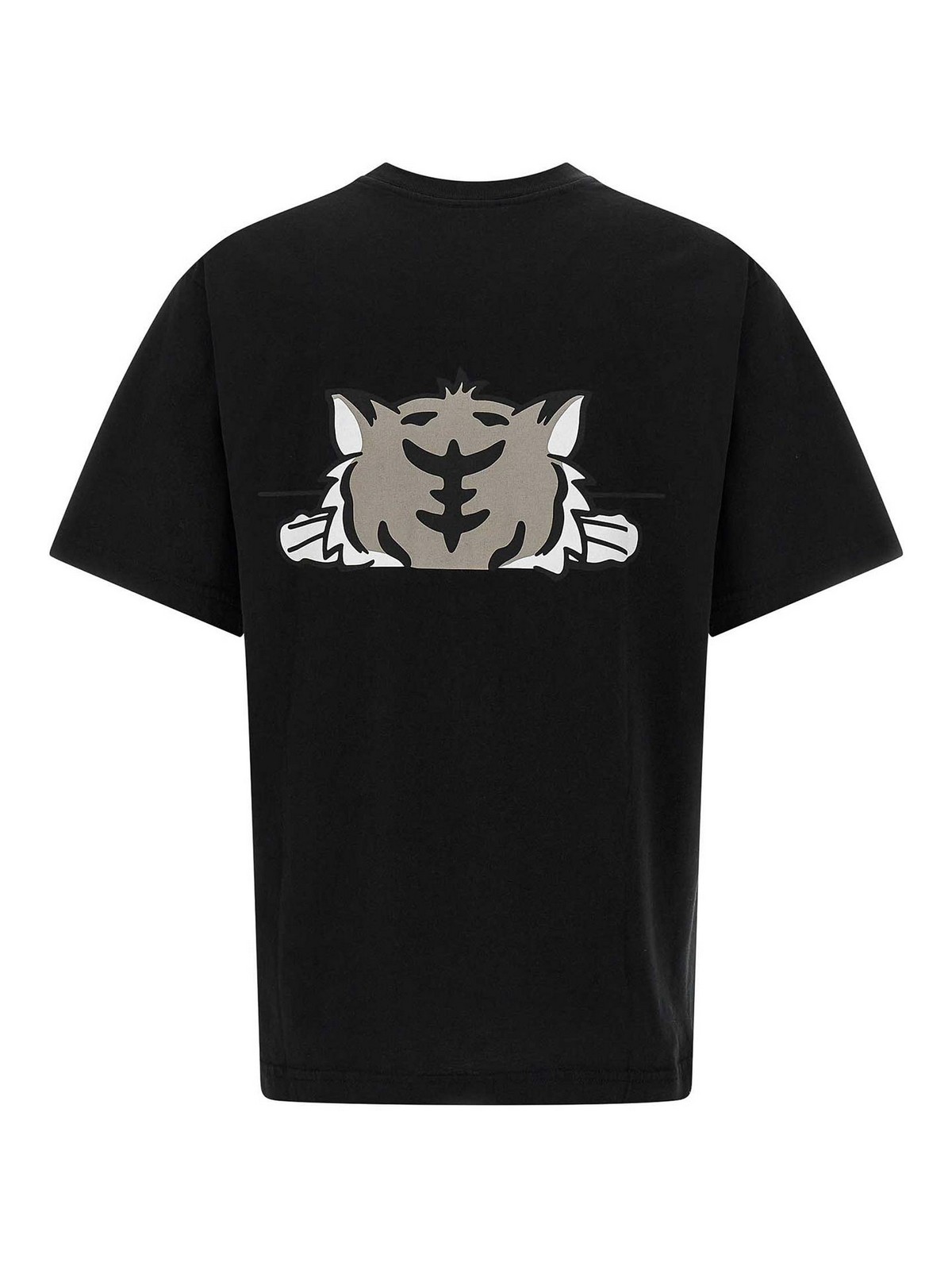 Camiseta de cuello redondo de algodón con estampado lateral y manga corta.