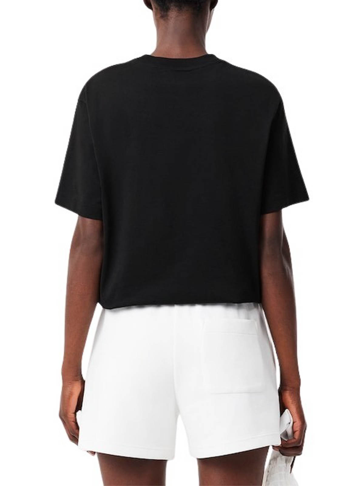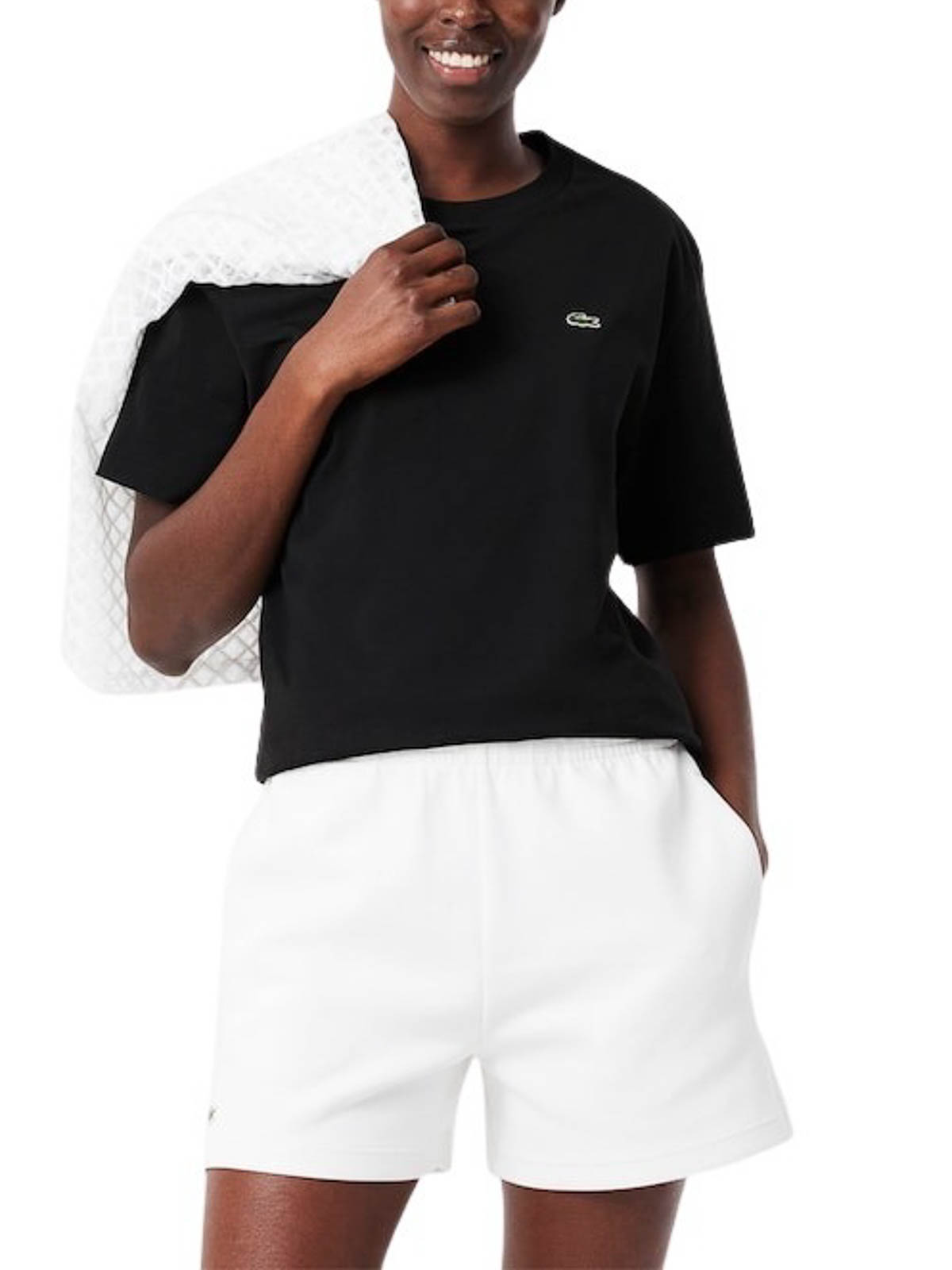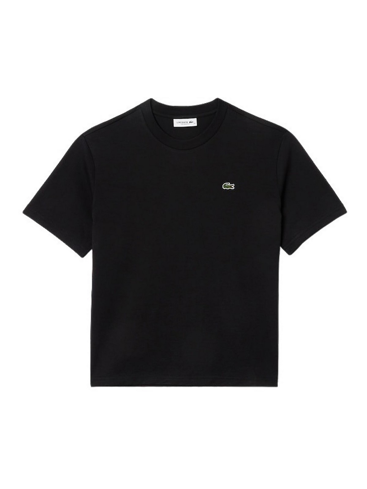 Camiseta de punto confeccionada en algodón pima, modelo cómodo de corte holgado, cuello redondo en contraste, bordado de cocodrilo en el pecho