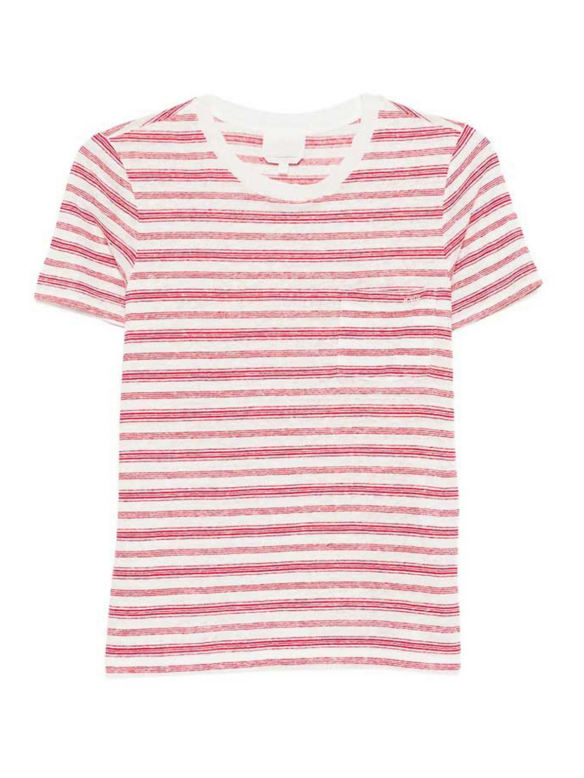 Mangas cortas con cuello redondo y bolsillo en el pecho a rayas rojas