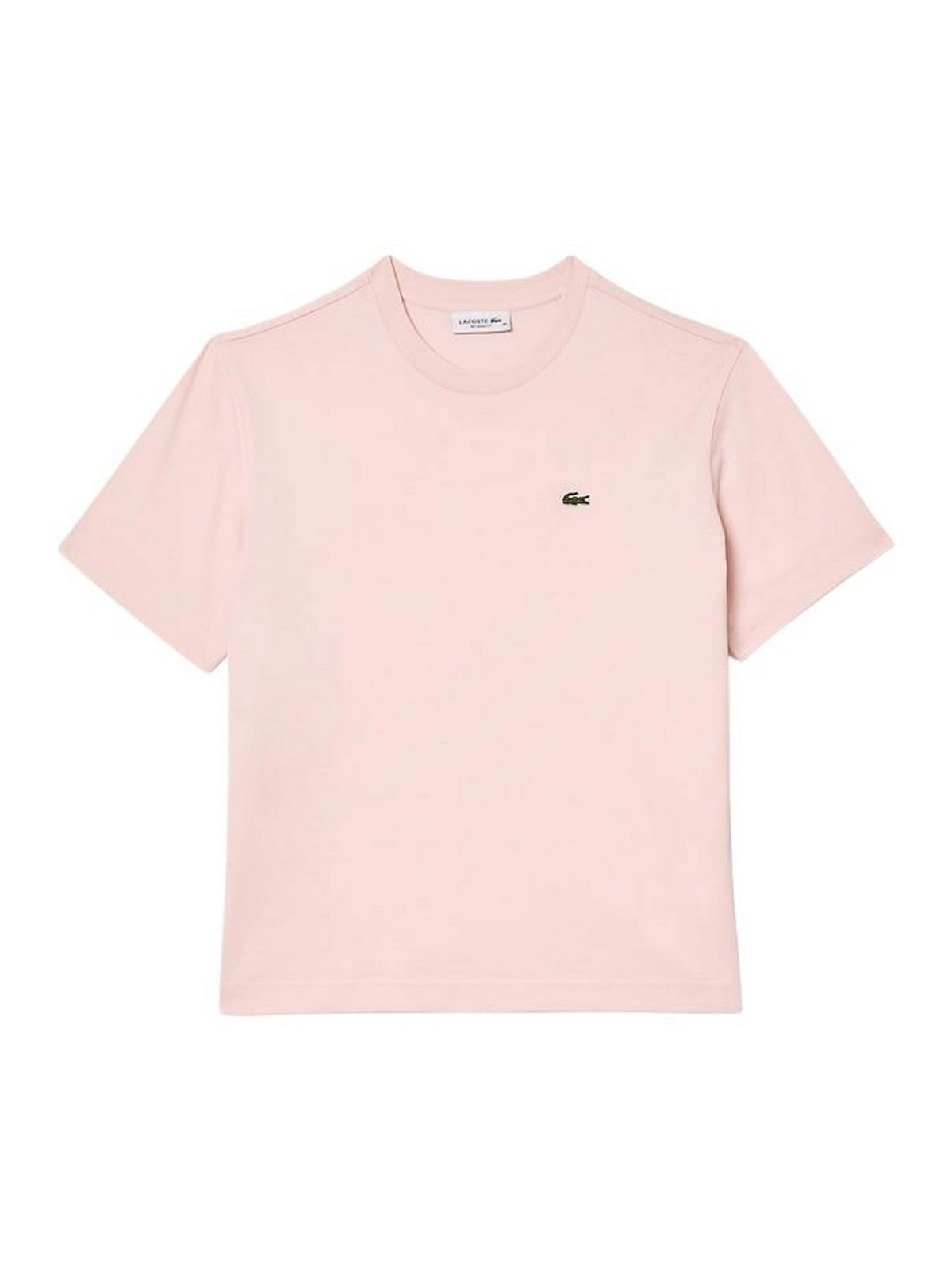 Camiseta de punto confeccionada en algodón pima, modelo cómodo de corte holgado, cuello redondo en contraste, bordado de cocodrilo en el pecho