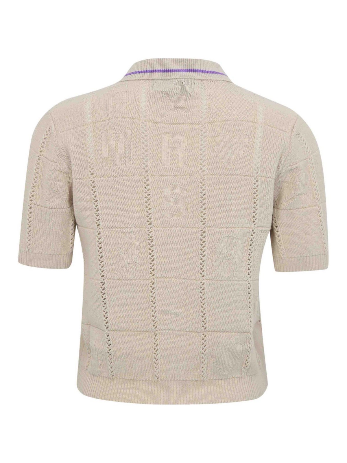 Diseño perforado de tejido liso invertido en mezcla y mezcla, mangas cortas acanaladas, cuello con botón en el dobladillo recto
