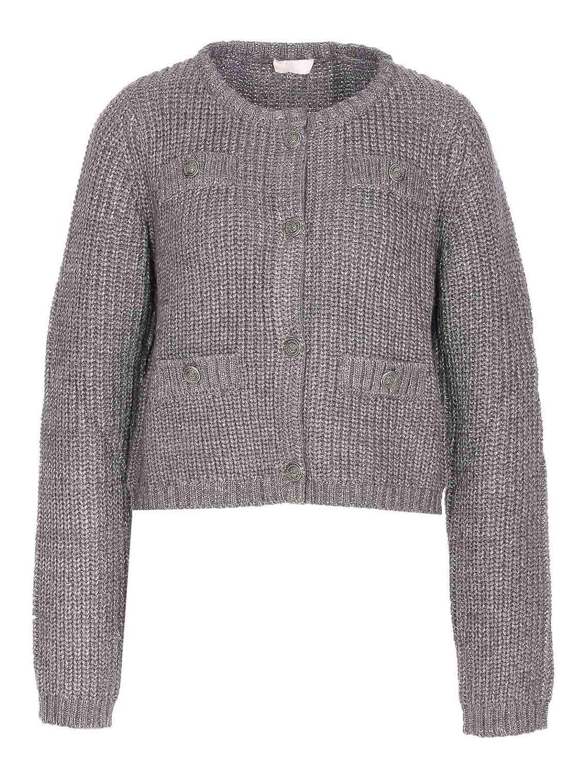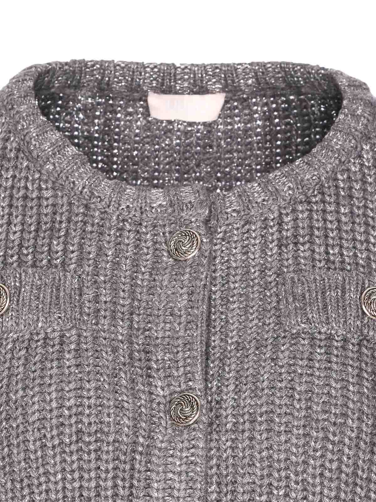 Cárdigan Liu jo de punto gris con botones en la parte delantera, cuello redondo, manga larga Nombre del color del