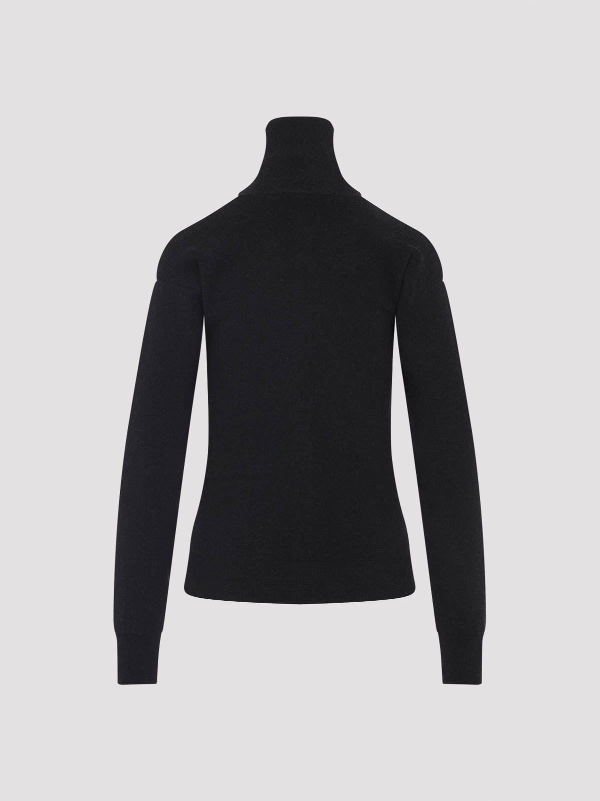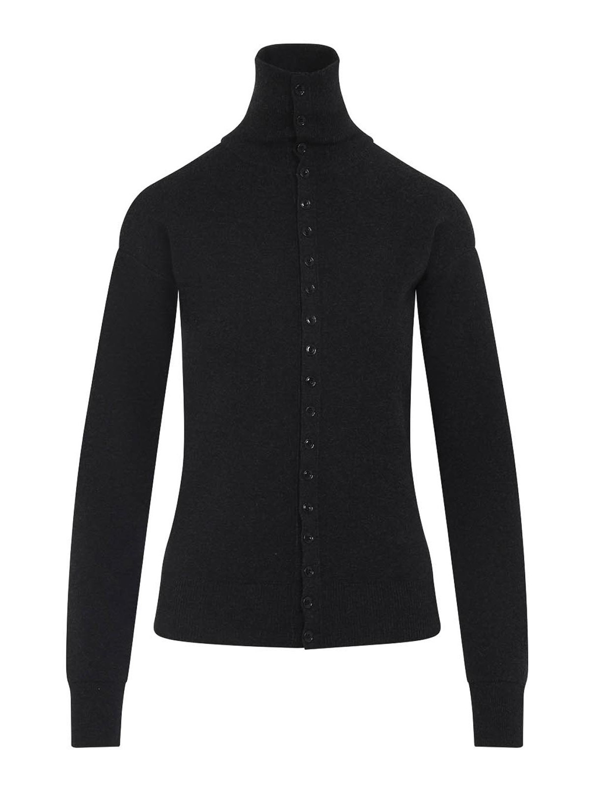 Cárdigan gris ajustado con botones Lemaire confeccionado en gris antracita, cuello alto, hombros caídos, mangas largas, bordes acanalados