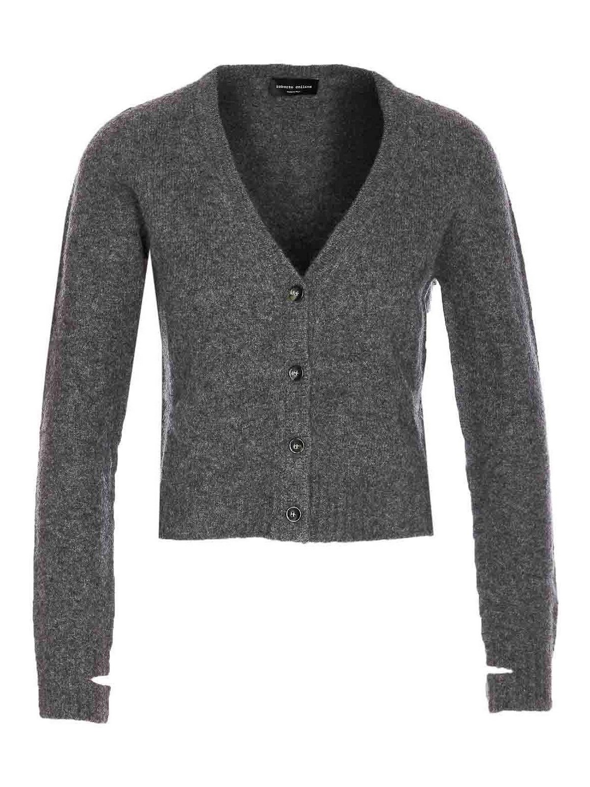 Cárdigan gris Roberto collina con cuello en V y botones frontales, mangas largas