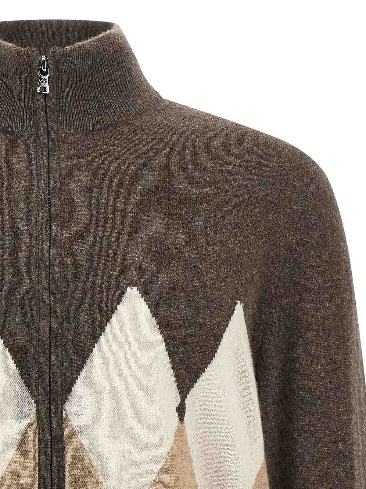 Cárdigan de cachemir con estampado de rombos en el cuello alto, manga larga con cremallera y puños doblados