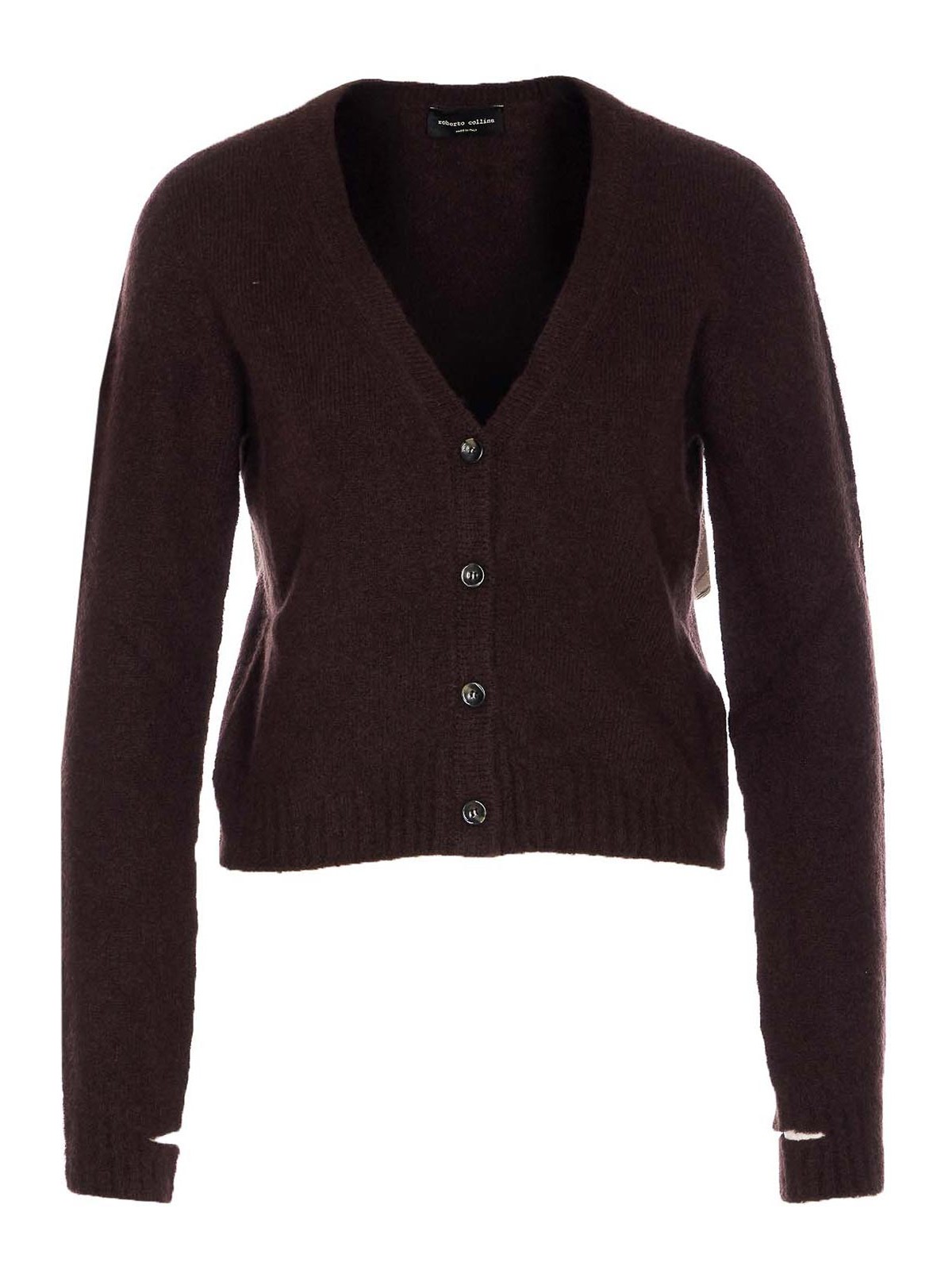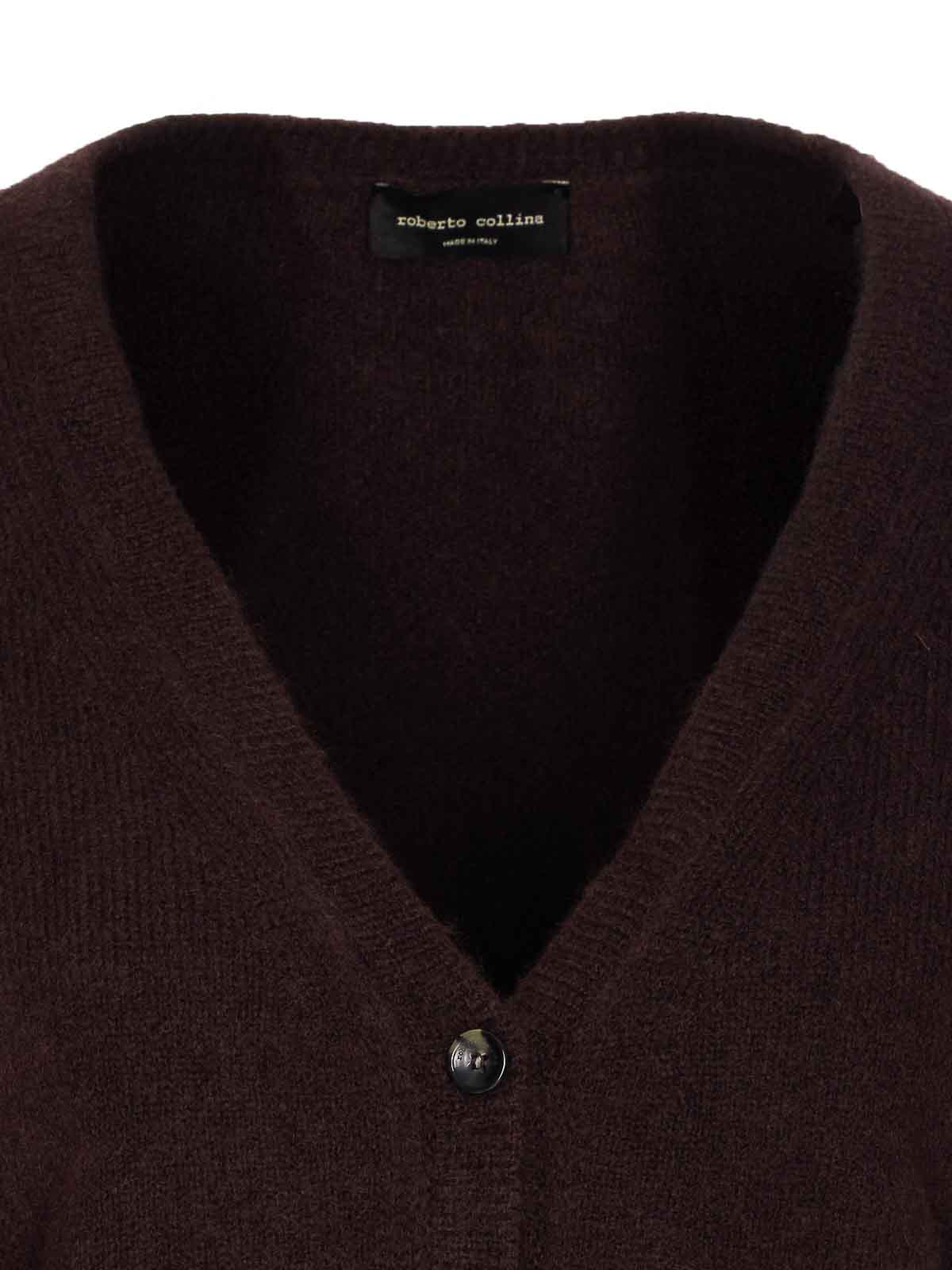 Cárdigan Roberto collina marrón con botones en la parte delantera, cuello en V, manga larga recortada en los puños Nombre del color del