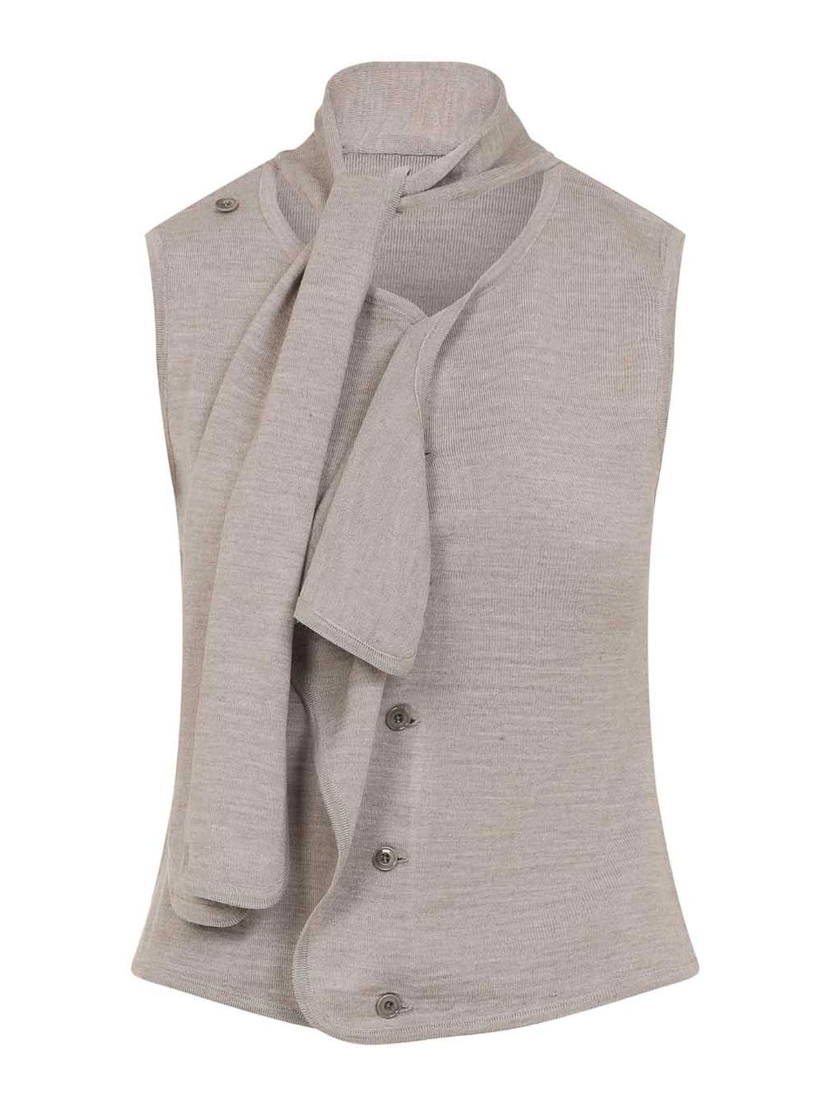 Cárdigan sin mangas asimétrico antracita antracita de color topo claro confeccionado y cuello bufanda drapeado con botones sin mangas dobladillo recto