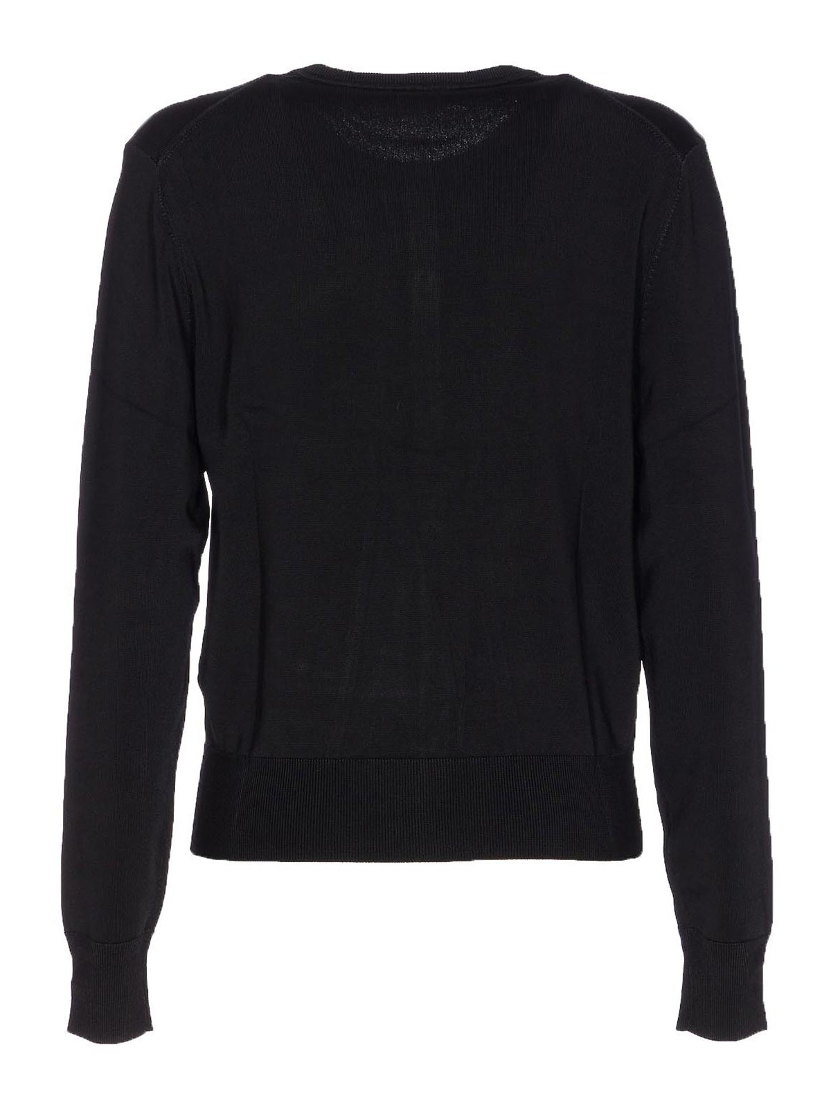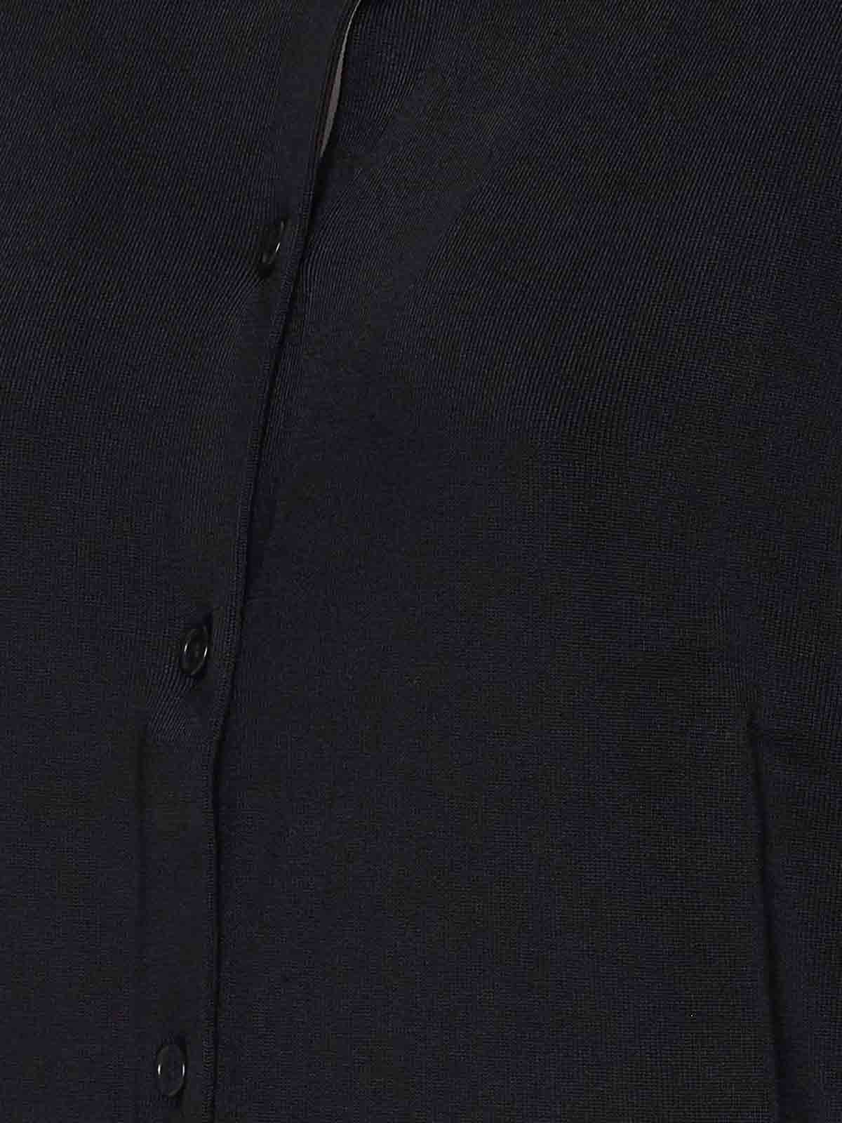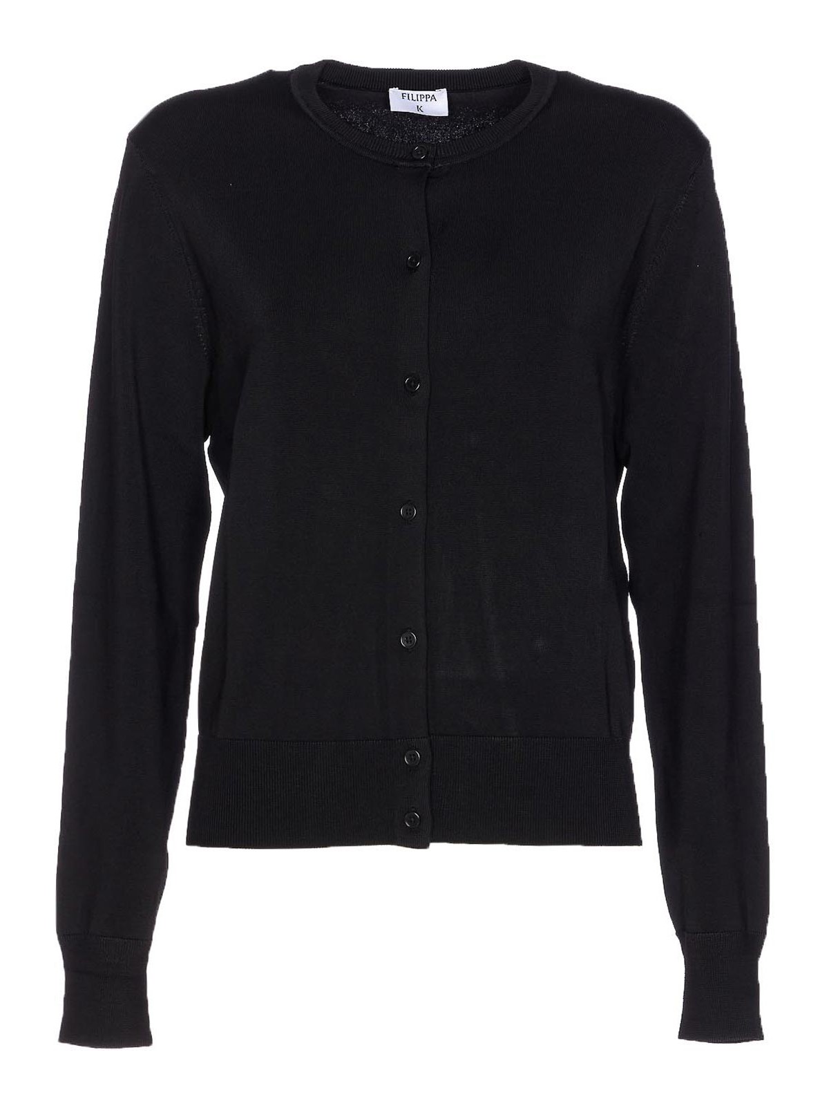 Cárdigan Filippa k de punto brillante negro con botones en la parte delantera, cuello redondo, manga larga, nombre del diseñador del color: negro