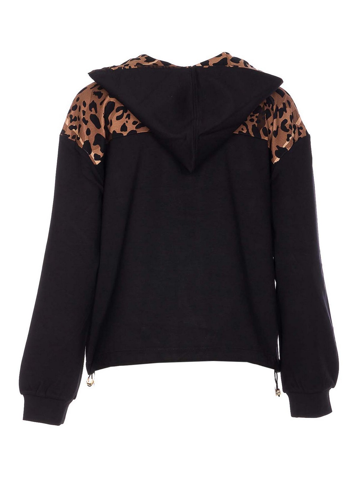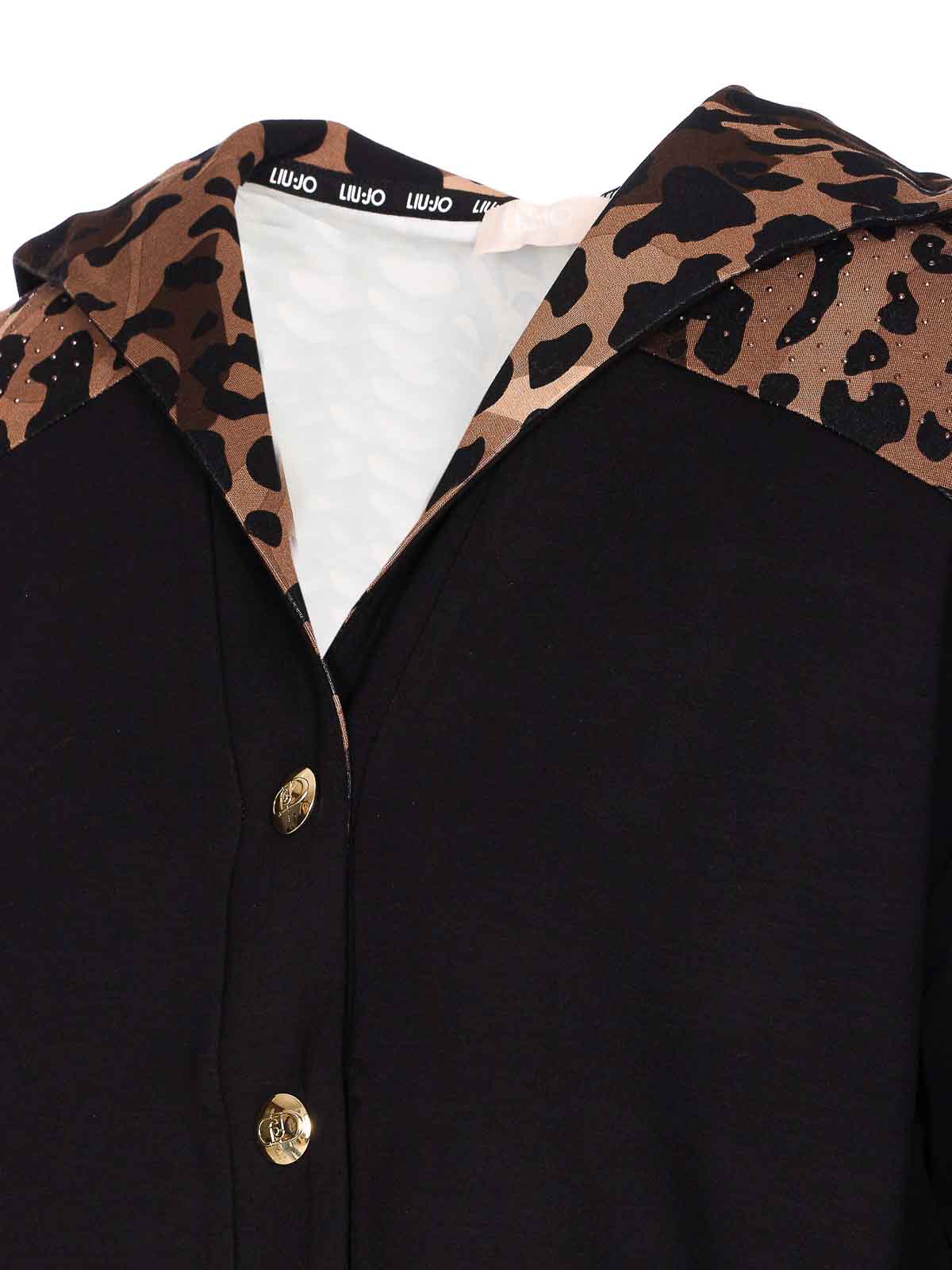 Cárdigan Liu jo negro con botones, escote en V, manga larga, capucha con estampado de leopardo en la parte inferior S Nombre del color del diseñador: negro