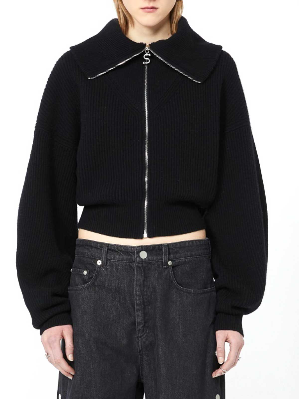 Cárdigan en mezcla de lana y cachemir con mucho volumen y un tacto suave, un corte holgado en el pecho y un ajuste ajustado en la cintura, cuello alto que se puede doblar con una abertura con cremallera metálica y un deslizador personalizado, hombros caídos, mangas anchas que se ajustan a la muñeca y un corte regular.