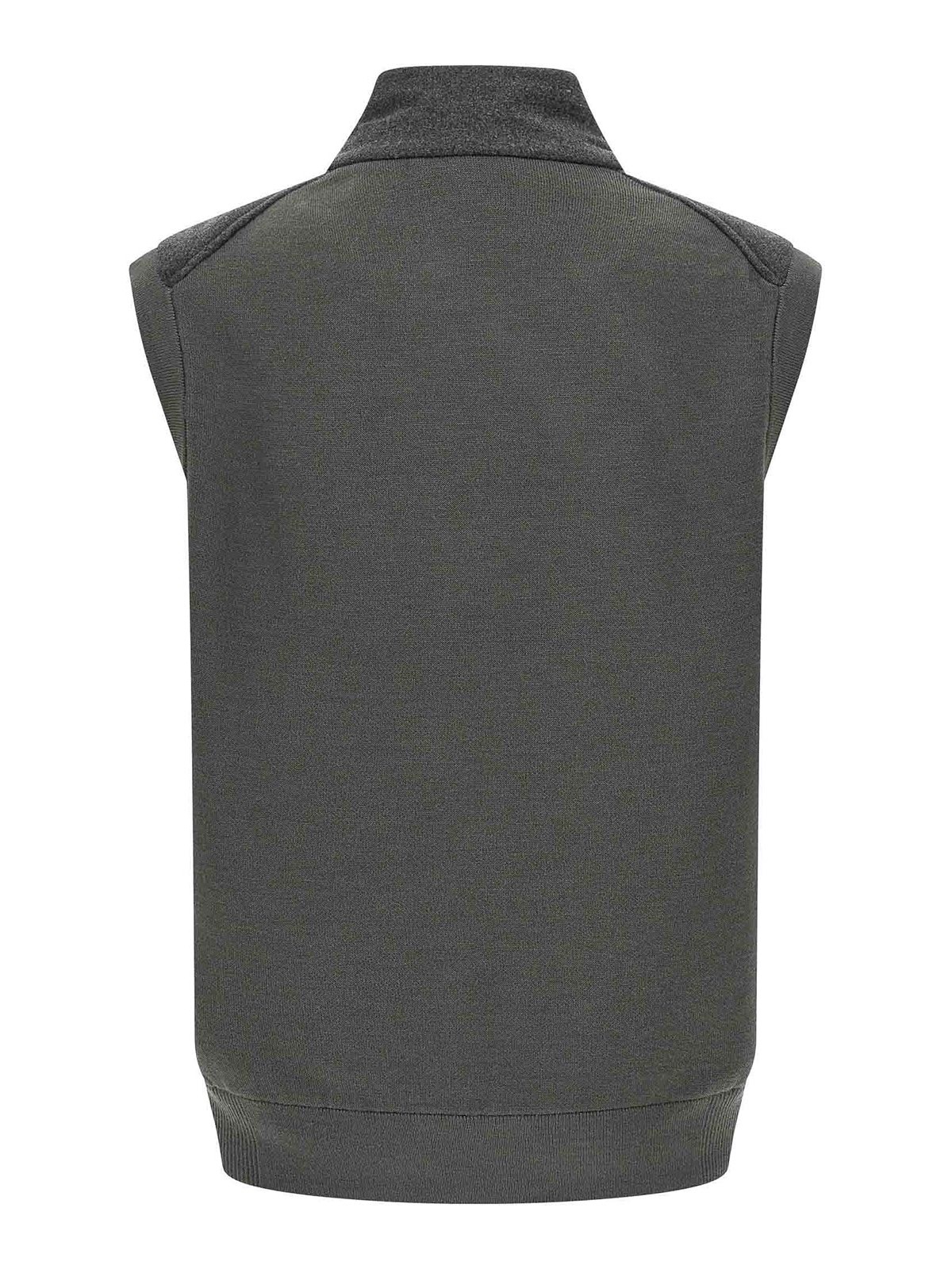 Chaleco «heflono» de lana virgen con franela técnica acolchada en la parte delantera, cuello alto, cierre frontal con cremallera, bolsillos y banda en la parte inferior de la prenda.