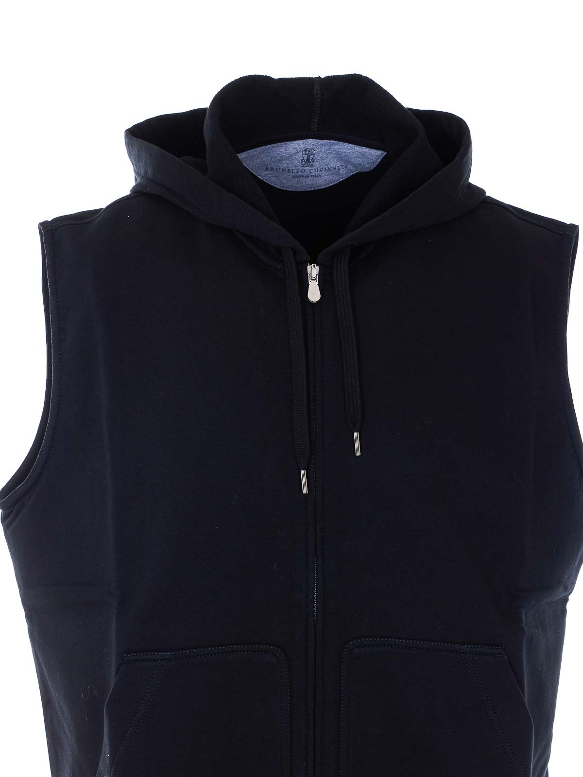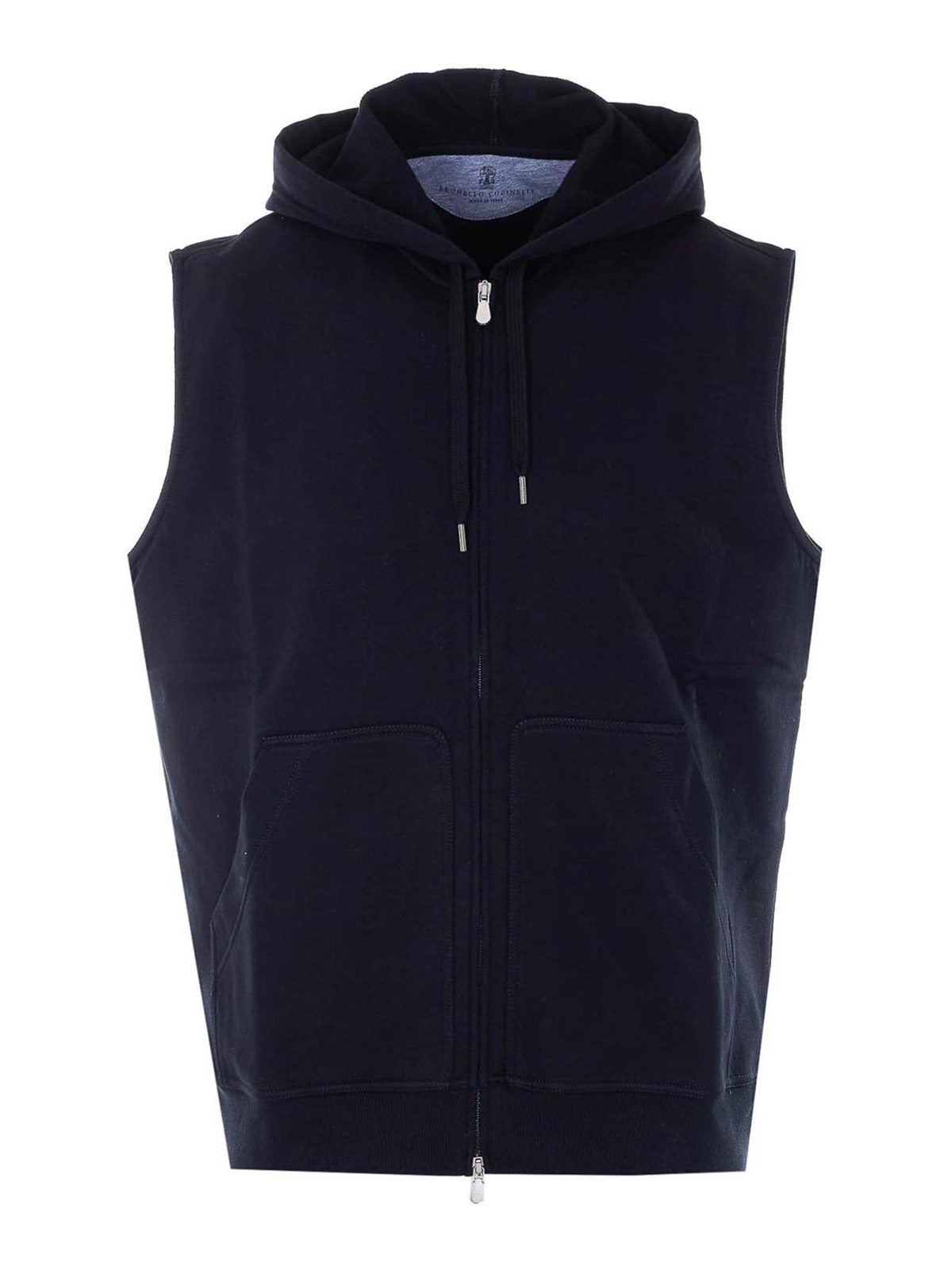 Cucinelli Brunello con cierre frontal de cremallera, sin mangas, capucha, cierre coulisse