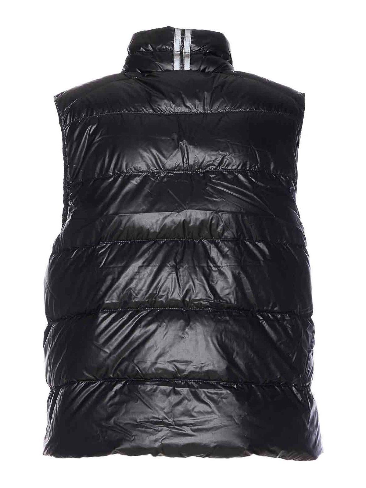 Chaleco de ciprés negro de ganso canadiense con cremallera, bolsillos con cremallera, logotipo de parche, cuello alto, acolchado ligero, color del diseñador: negro