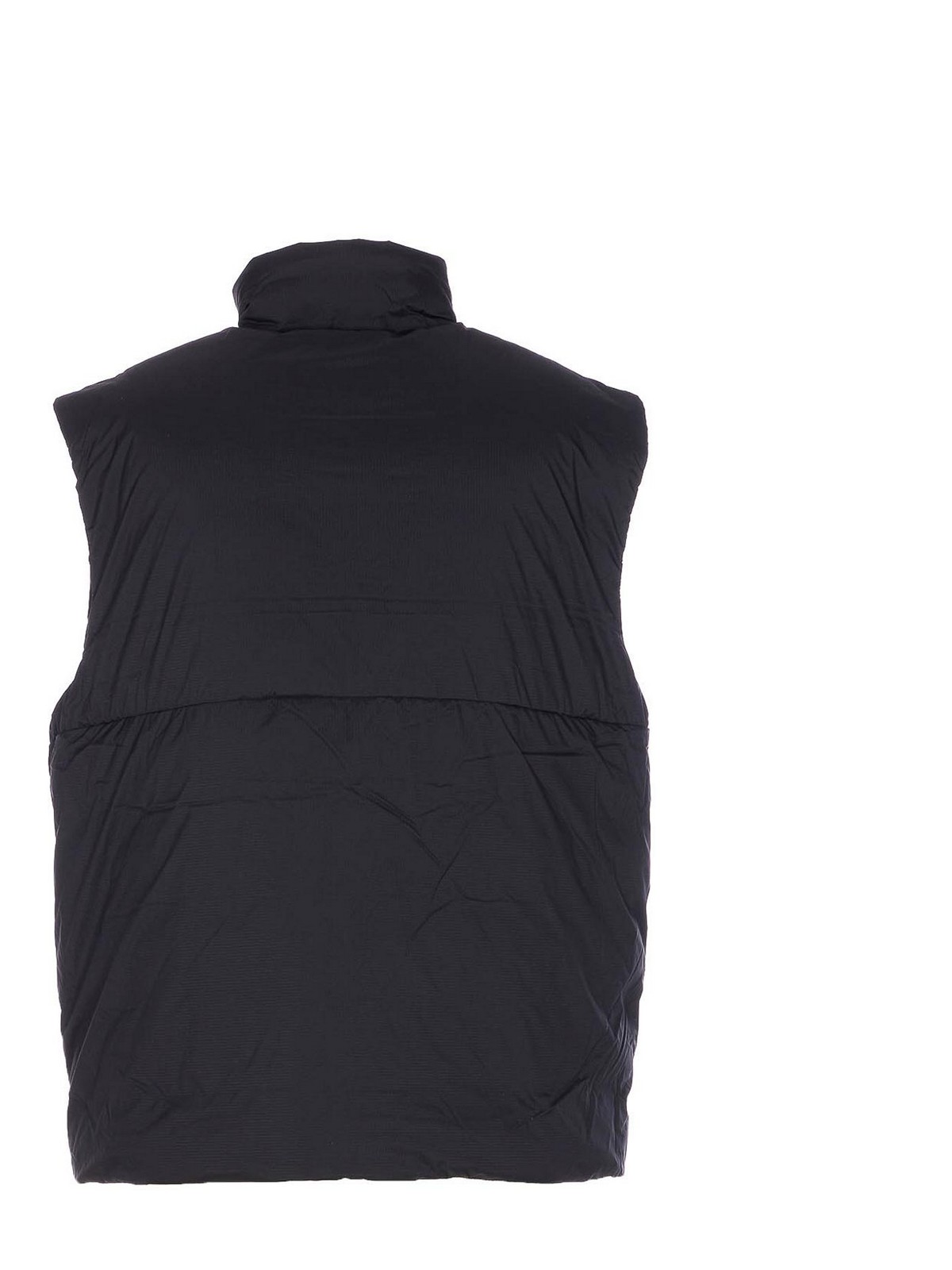 Chaleco tipo lodge negro de ganso canadiense con logotipo de parche sin mangas con cremallera en los bolsillos con cremallera Nombre