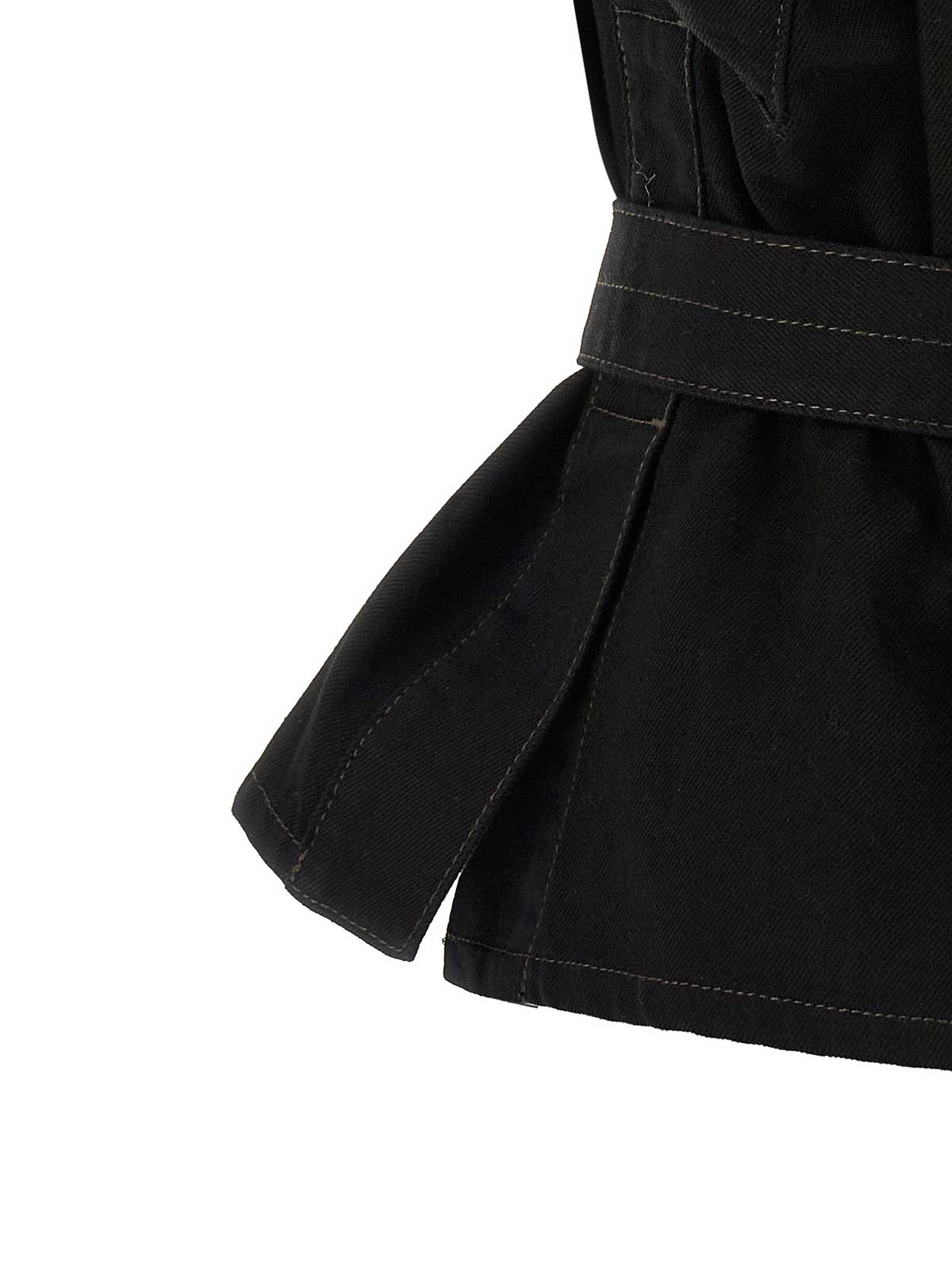 Chaleco vaquero de Chasuble con textura de sarga a la vista y lavado intenso, costuras en contraste, cuello en V, sisas anchas, aberturas laterales y cinturón extraíble a juego.