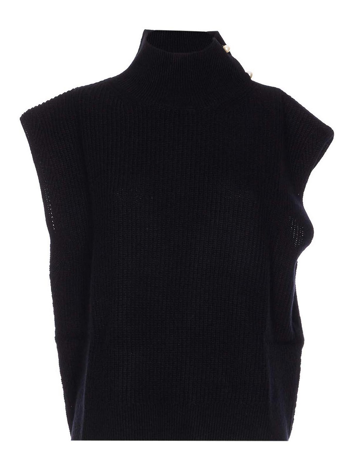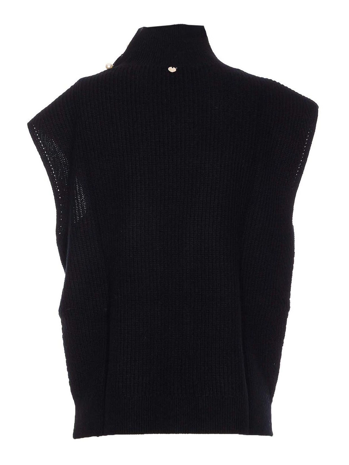 Chaleco de punto negro Liu jo con cuello alto con perlas
