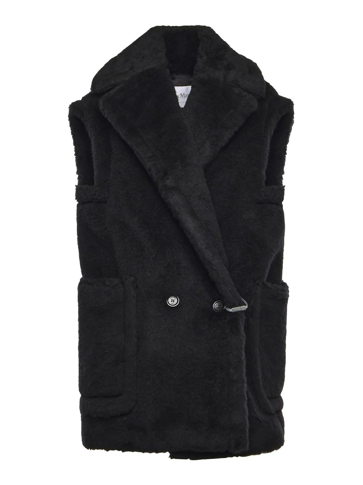 hecho de peluche de alpaca y lana sobre una base de seda, cierre con botones en la parte delantera, bolsillos de parche en la parte delantera, cuello con solapa, la talla que se muestra en la foto es 36, color: negro