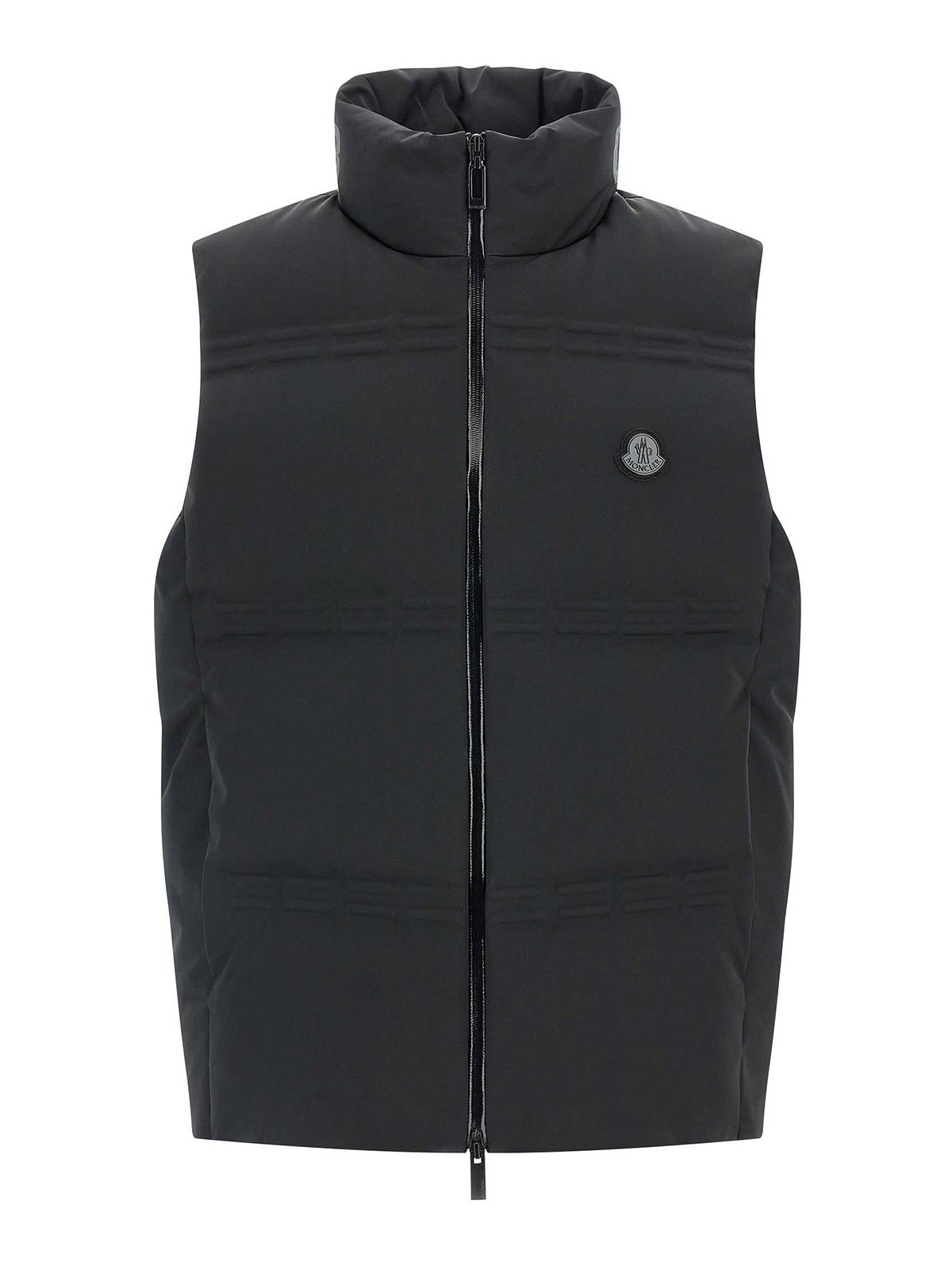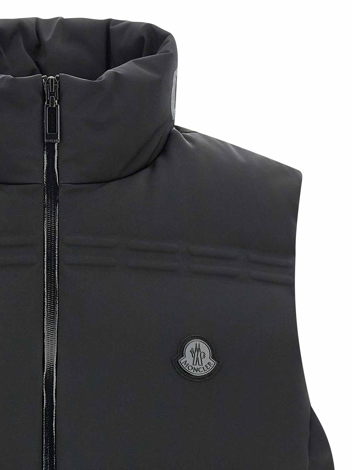 Chaleco Moncler x asap Rocky, estampado y «brillante» en tejido técnico con cuello alto, cierre con cremallera frontal con doble cursor, parche con el logotipo en la parte delantera, sin mangas.