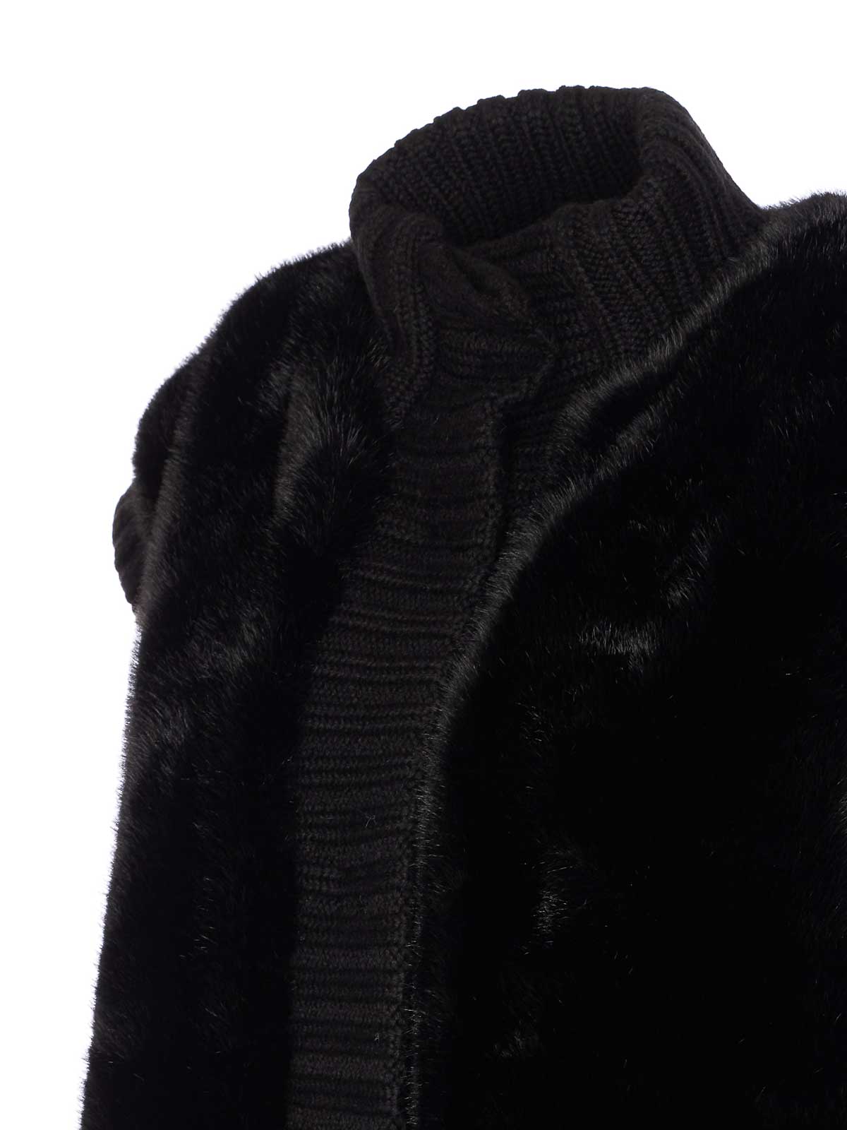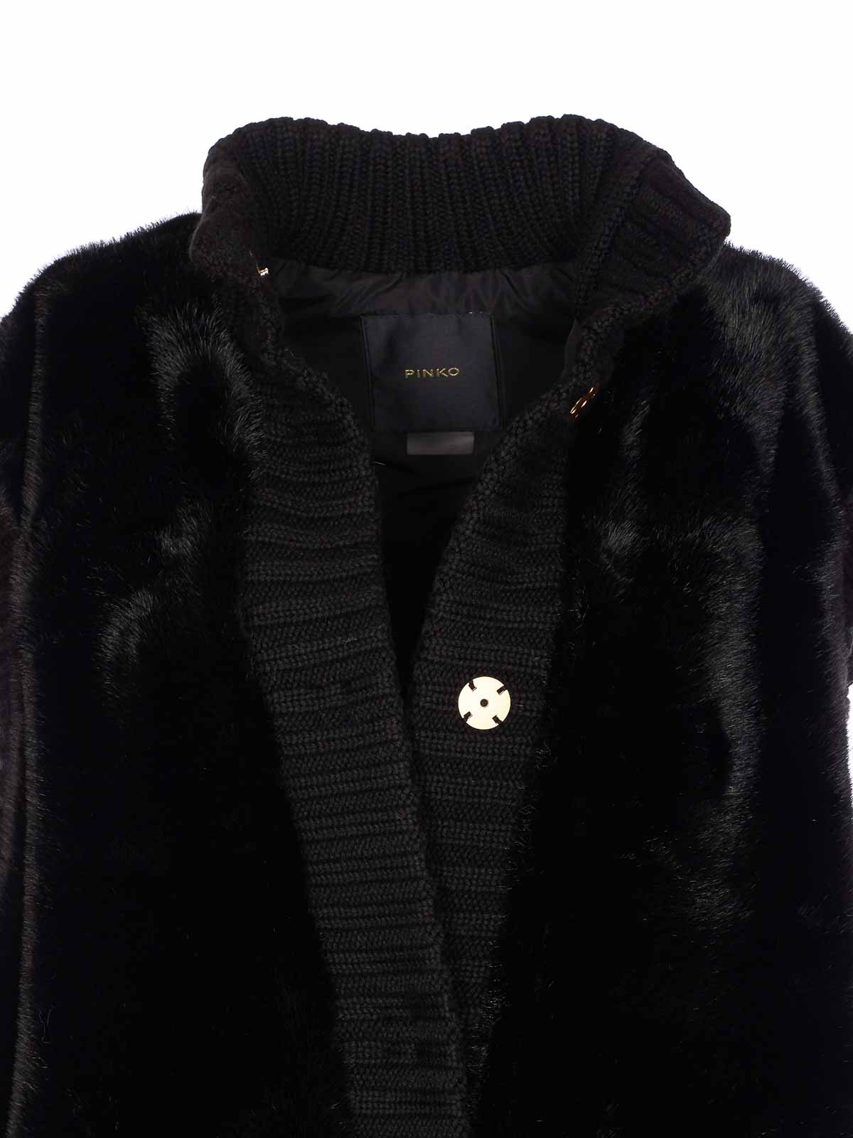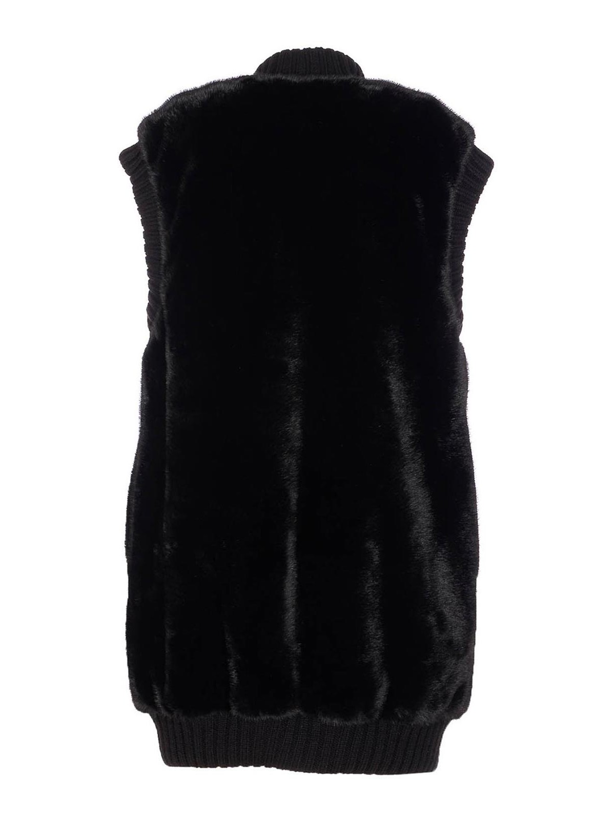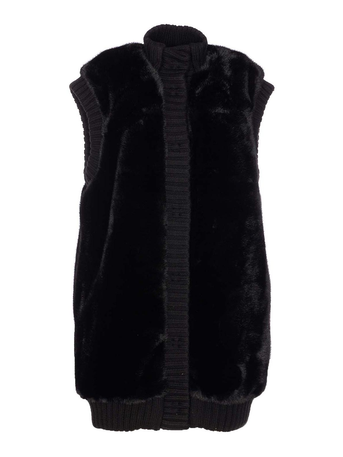 Chaleco negro rosa, detalle de piel sintética, modelo largo, cierre con botones, detalle de punto, bolsillos laterales