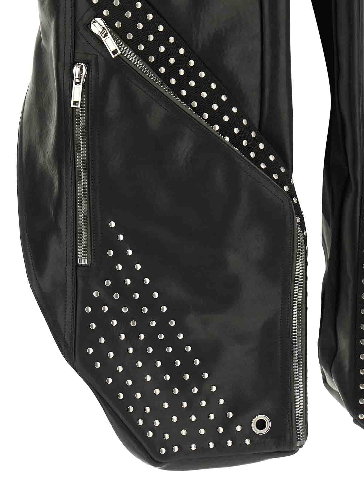 chaleco Temple de piel de buey brillante y pesada curtida con vegetales con cera natural y termoprensado final con la aplicación de tachuelas metálicas y bolsillos. La parte delantera de este chaleco se puede empujar hacia atrás y llevar hacia atrás. Como la piel de esta prenda es natural, no ha sido tratada con pigmentos que cubren su superficie, los signos y tonos naturales son visibles, lo que hace que cada piel y cada producto sean únicos.