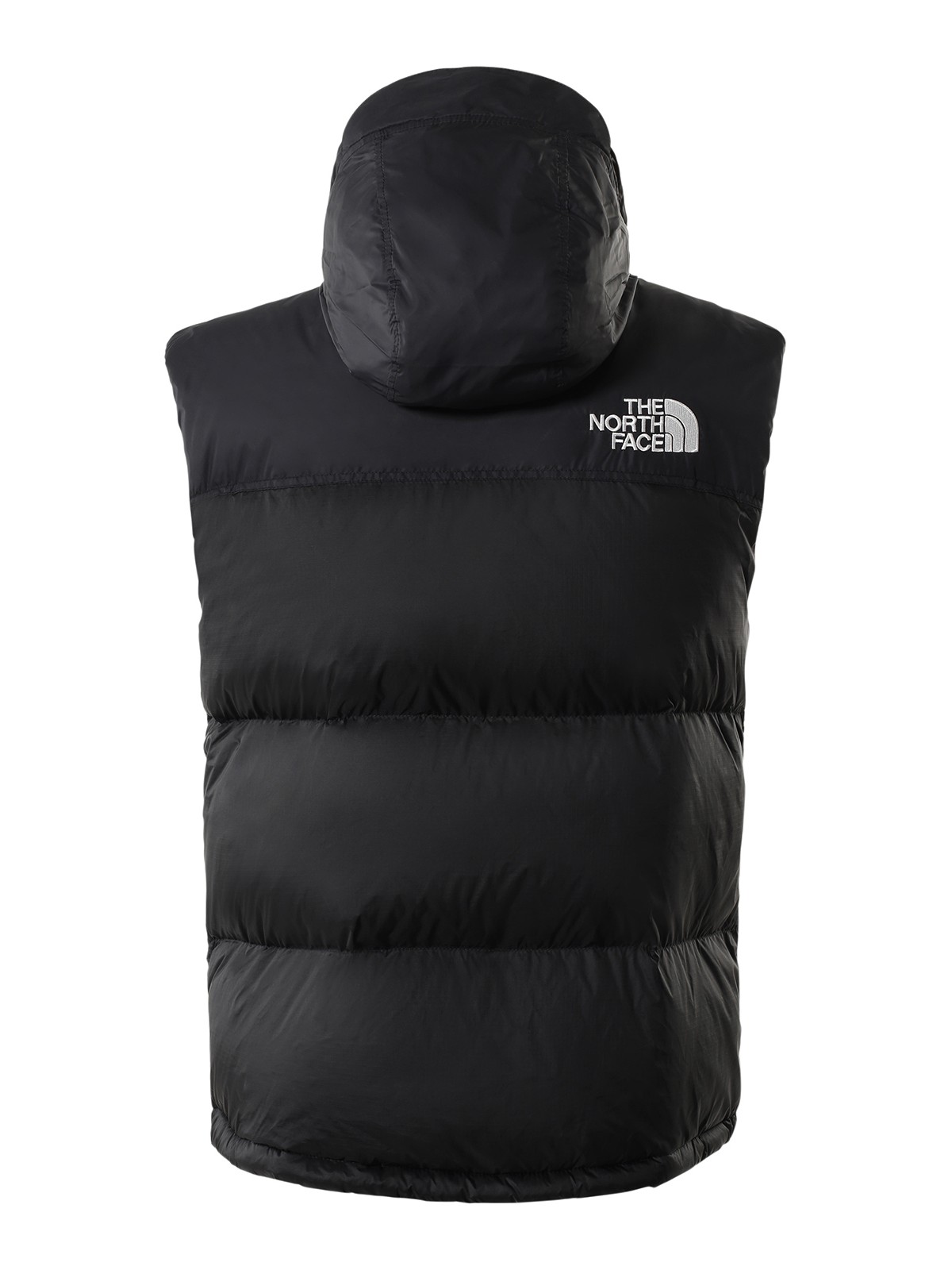 Chaleco The North Face con cremallera cosido con el logotipo en el pecho, bolsillos diagonales con cremalleras expuestas y deflectores sobredimensionados, la capucha se guarda en el cuello y todo el chaleco se puede plegar y guardar en el bolsillo derecho. El aislamiento alto de plumón te mantiene caliente en condiciones de frío