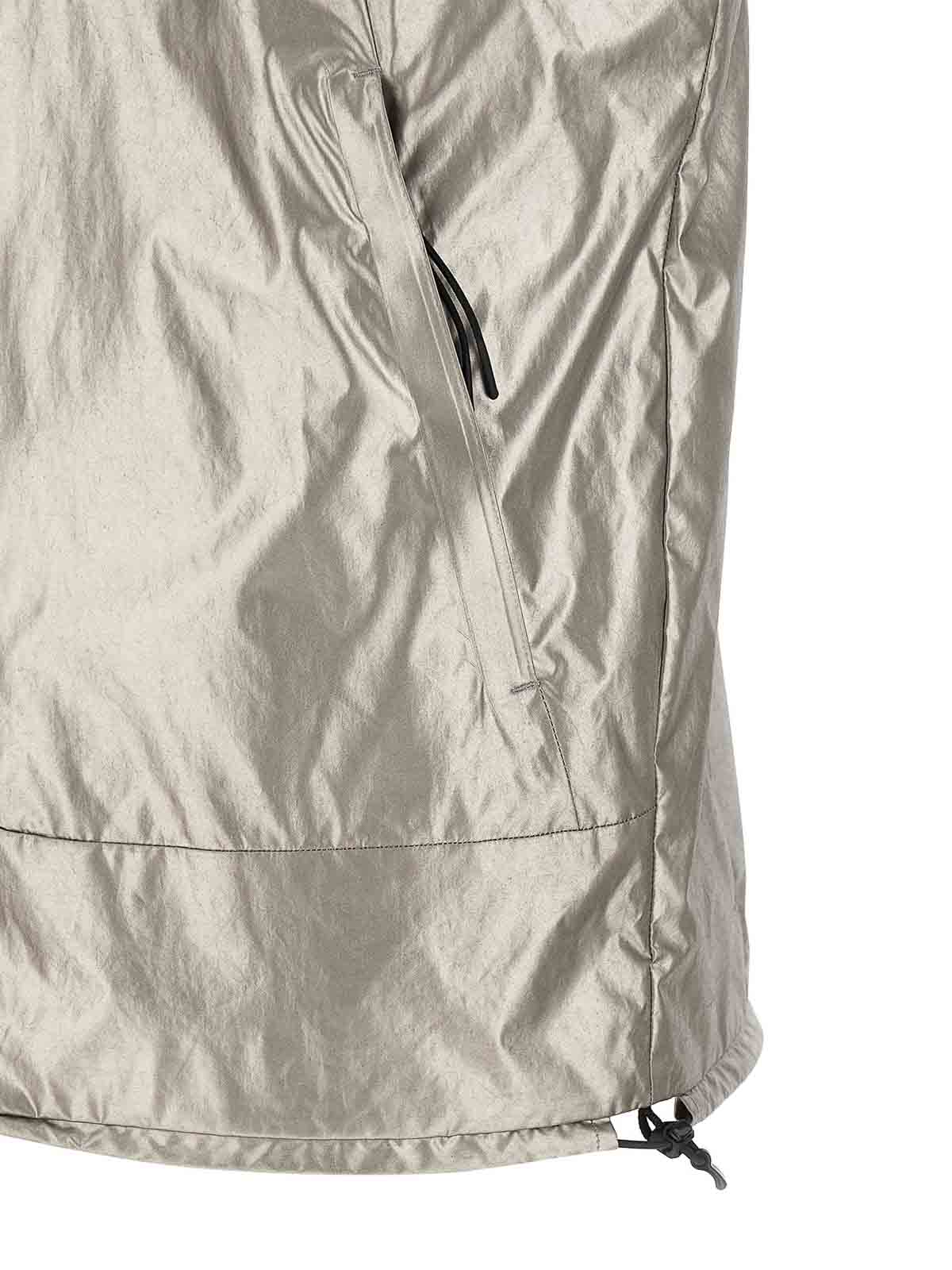 chaleco de la serie metropolis en nanotitanio, cuello alto con capucha extraíble, cierre frontal con cremallera, bolsillos, cordón en el dobladillo y puños elásticos.