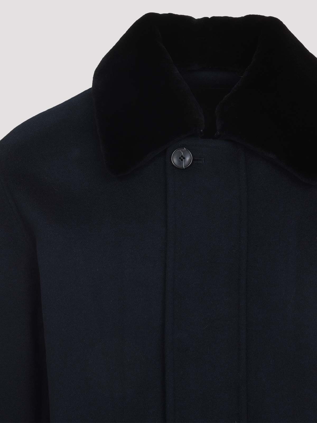 Chaqueta de visón azul marino de Yves Salomon confeccionada en azul marino y cuello de visón puntiagudo desmontable, bolsillos con solapa oculta, manga larga con puños abotonados, canesú trasero, dobladillo recto