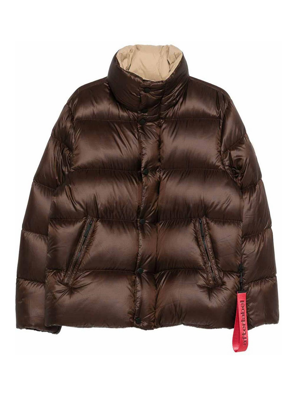 Chaqueta RDS marrón de After Label con cuello alto, bolsillos con cremallera y botones y acolchado horizontal
