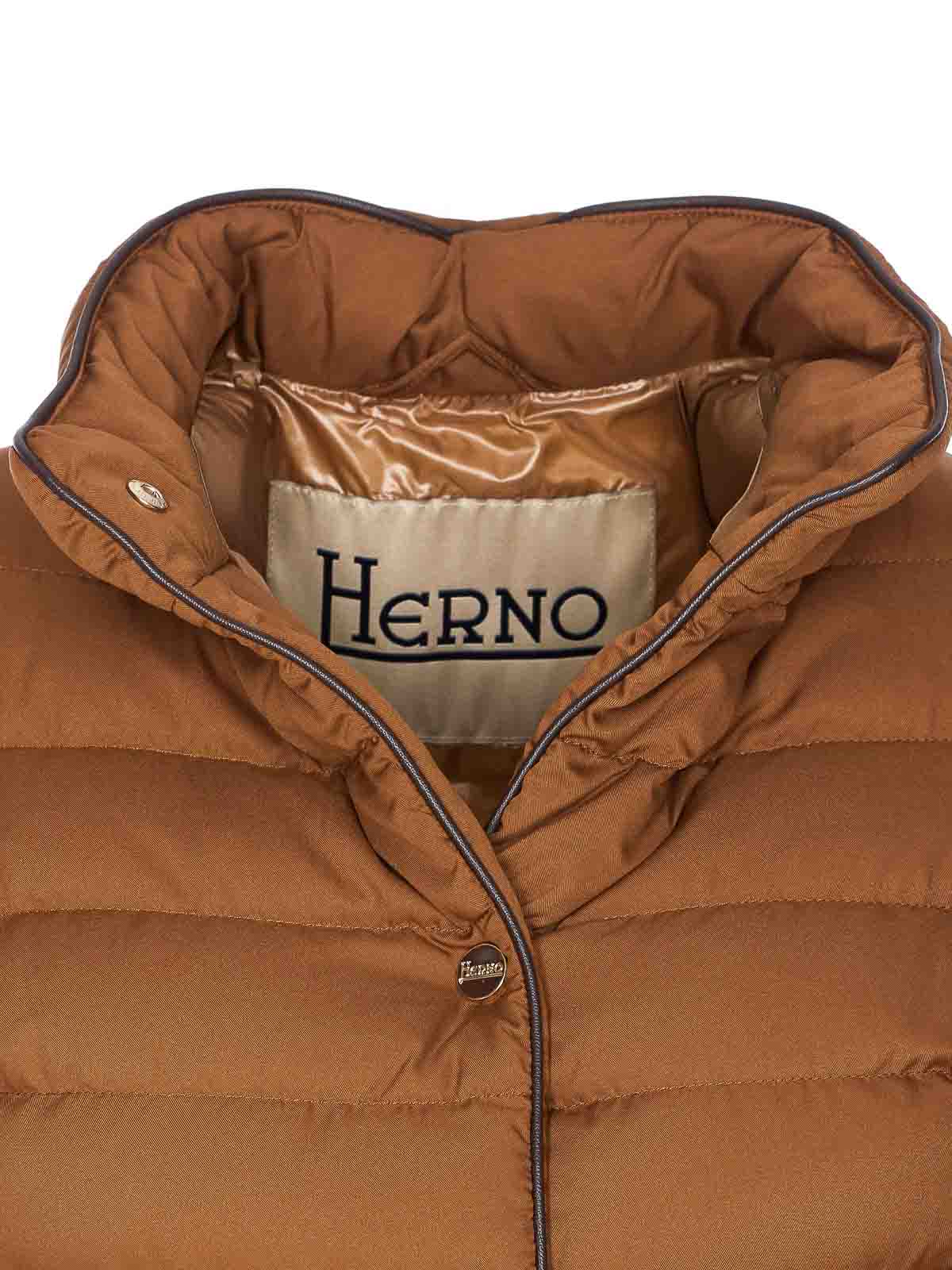 Chaqueta acolchada Herno marrón claro con botones, mangas largas, bolsillos con cremallera