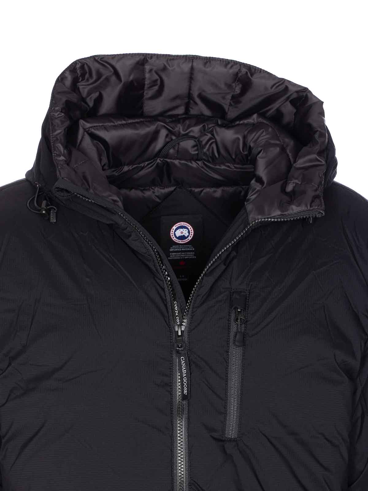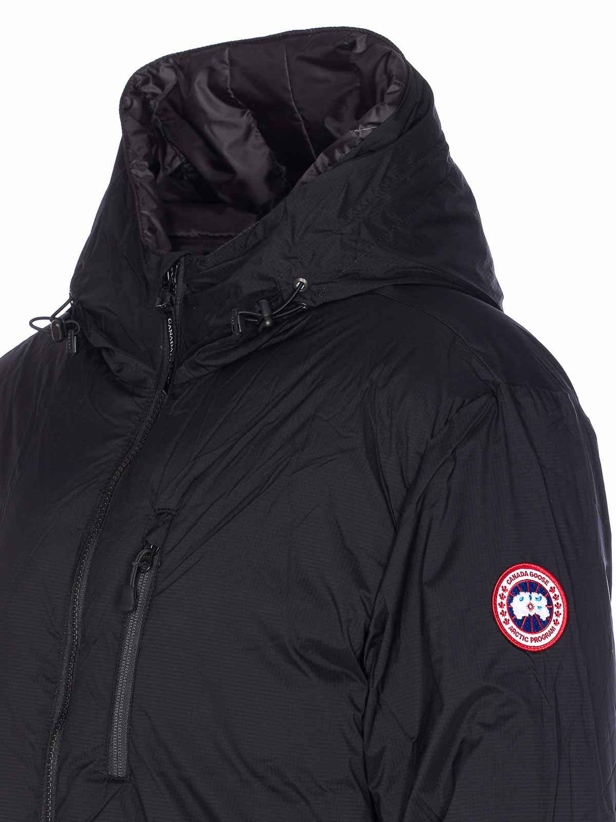 Chaqueta de cabaña negra con ganso de Canadá, capucha con cremallera, mangas largas, bolsillos con cremallera, parche lateral, logotipo, logotipo,