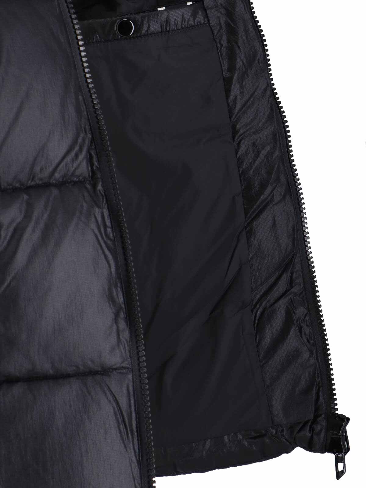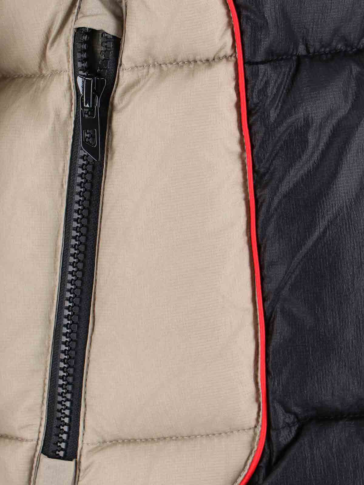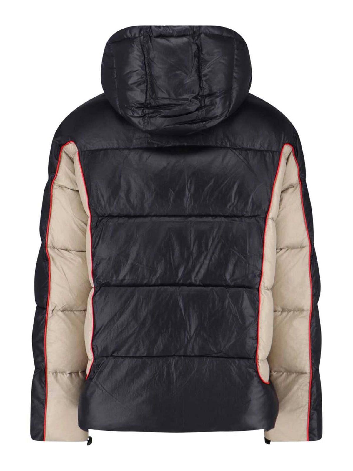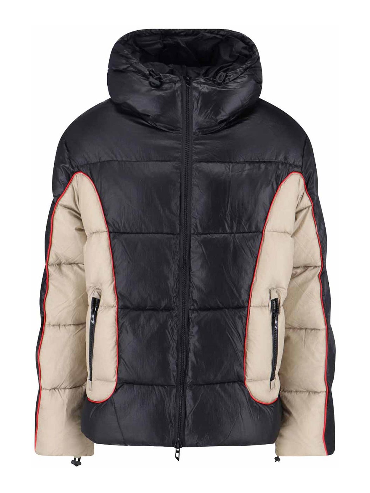 Edredón Diesel W-Osterd, de nailon negro, diseño acolchado y acolchado, detalles en contraste en color beige, acabados en rojo, cuello alto, capucha abatible, cierre con doble cremallera, dos bolsillos laterales con cremallera, puños acolchados y dobladillo recto.
